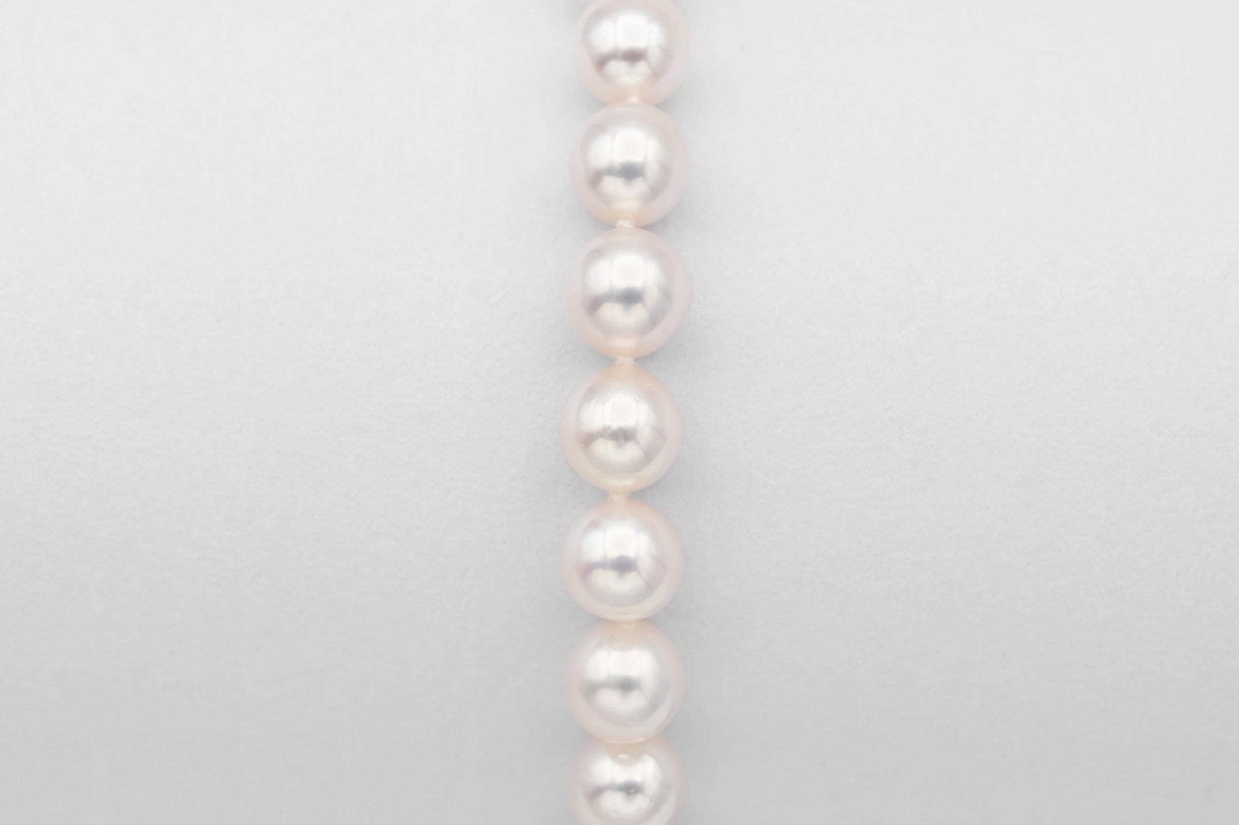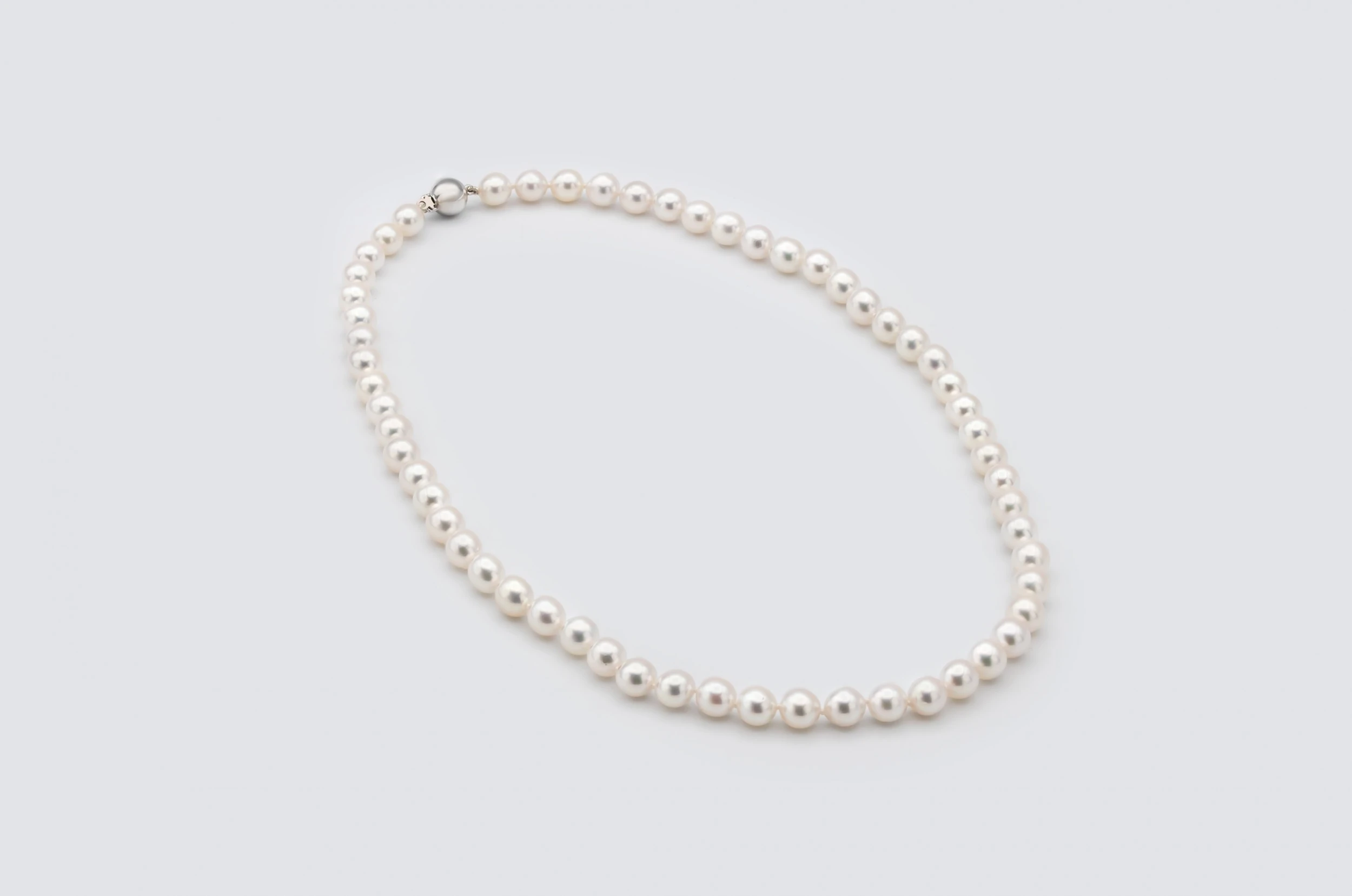 A classic and timeless piece, this Akoya pearl necklace features beautifully matched natural Akoya pearls with high lustre and refined roundness, elegantly finished with a polished 14ct white gold clasp. Measuring 16 inches (450mm), the necklace sits gracefully along the collarbone, offering a traditional, luxurious silhouette that complements both everyday elegance and formal styling.