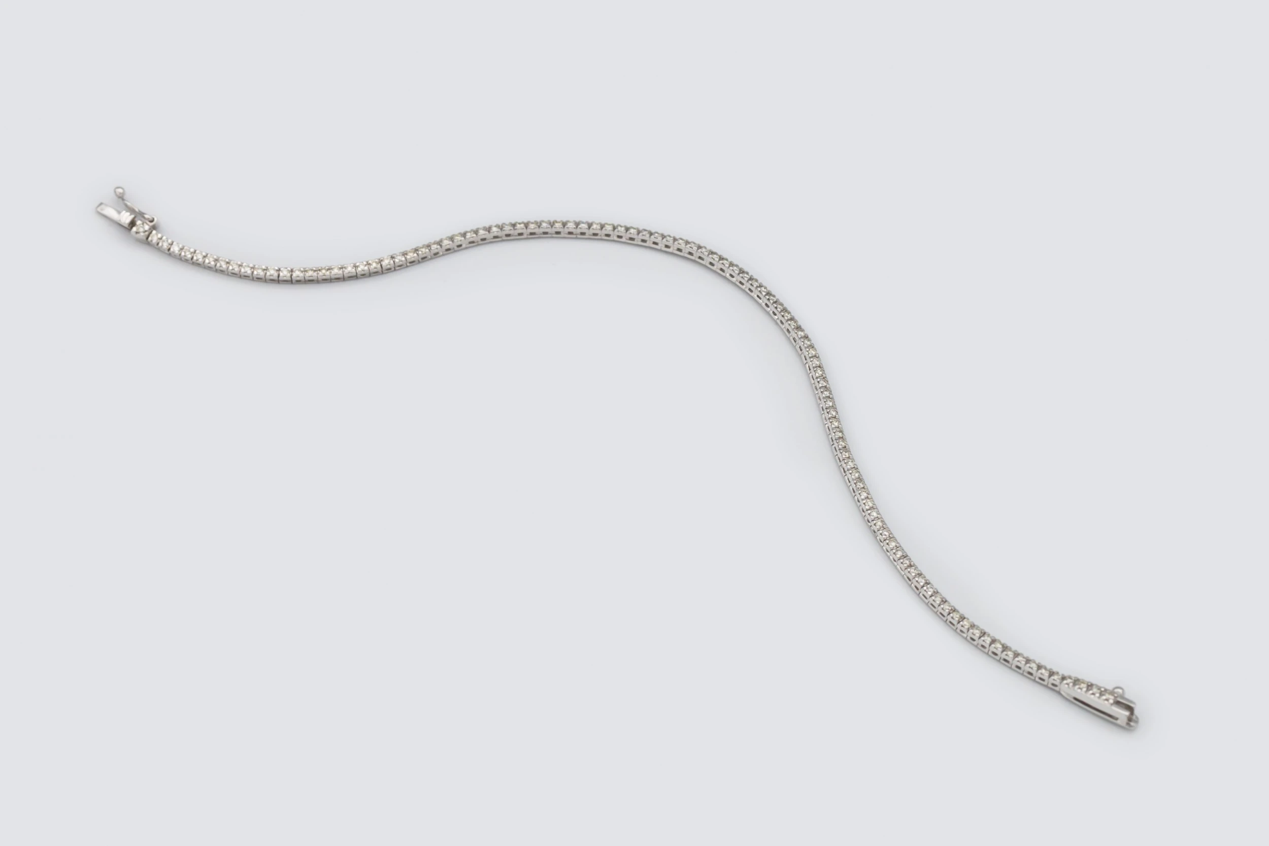 At 18cm, it provides a comfortable and refined fit on the wrist, perfect worn alone for understated luxury or stacked with other bracelets for a more elevated look. With its clean craftsmanship, bright white gold finish, and radiant brilliance, this bracelet reflects the modern sophistication and refined quality of AMPM Luxury Goods.