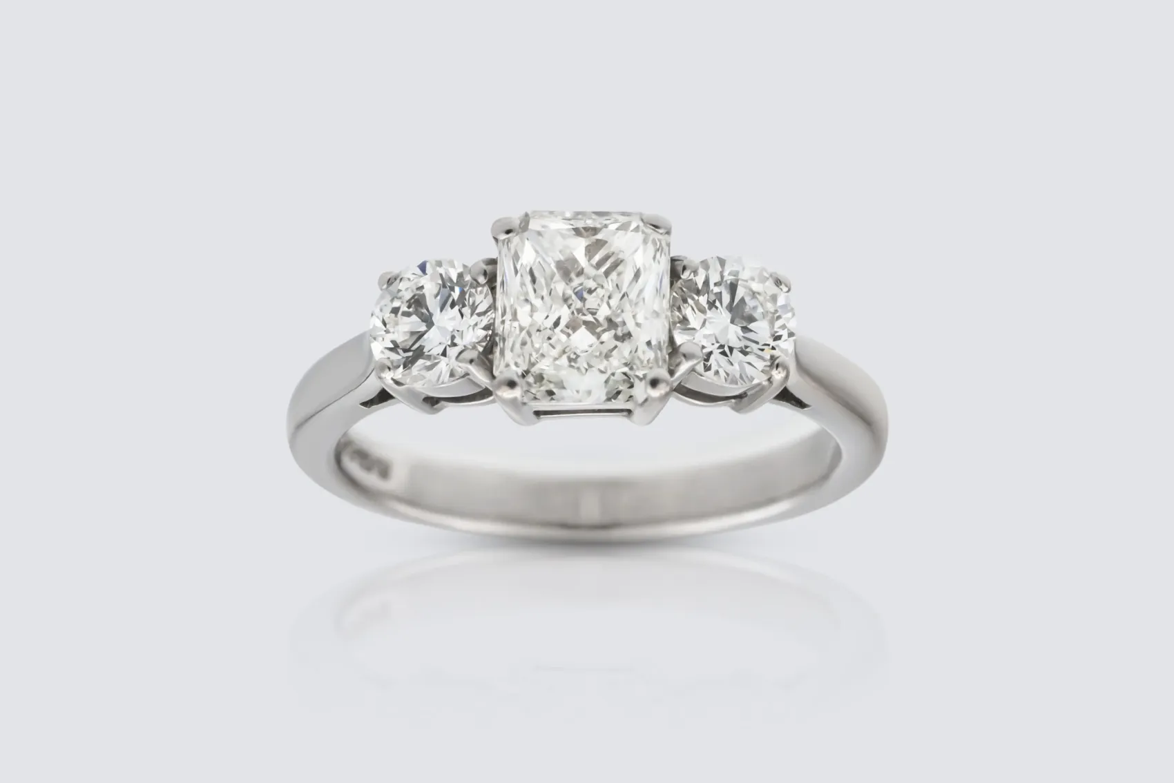 The three stone arrangement symbolises past, present, and future — making this ring a meaningful and sophisticated choice for engagements, anniversaries, or significant milestones. Crafted with precision and refined proportions, this piece embodies the modern elegance and fine craftsmanship at the heart of AMPM Luxury Goods.