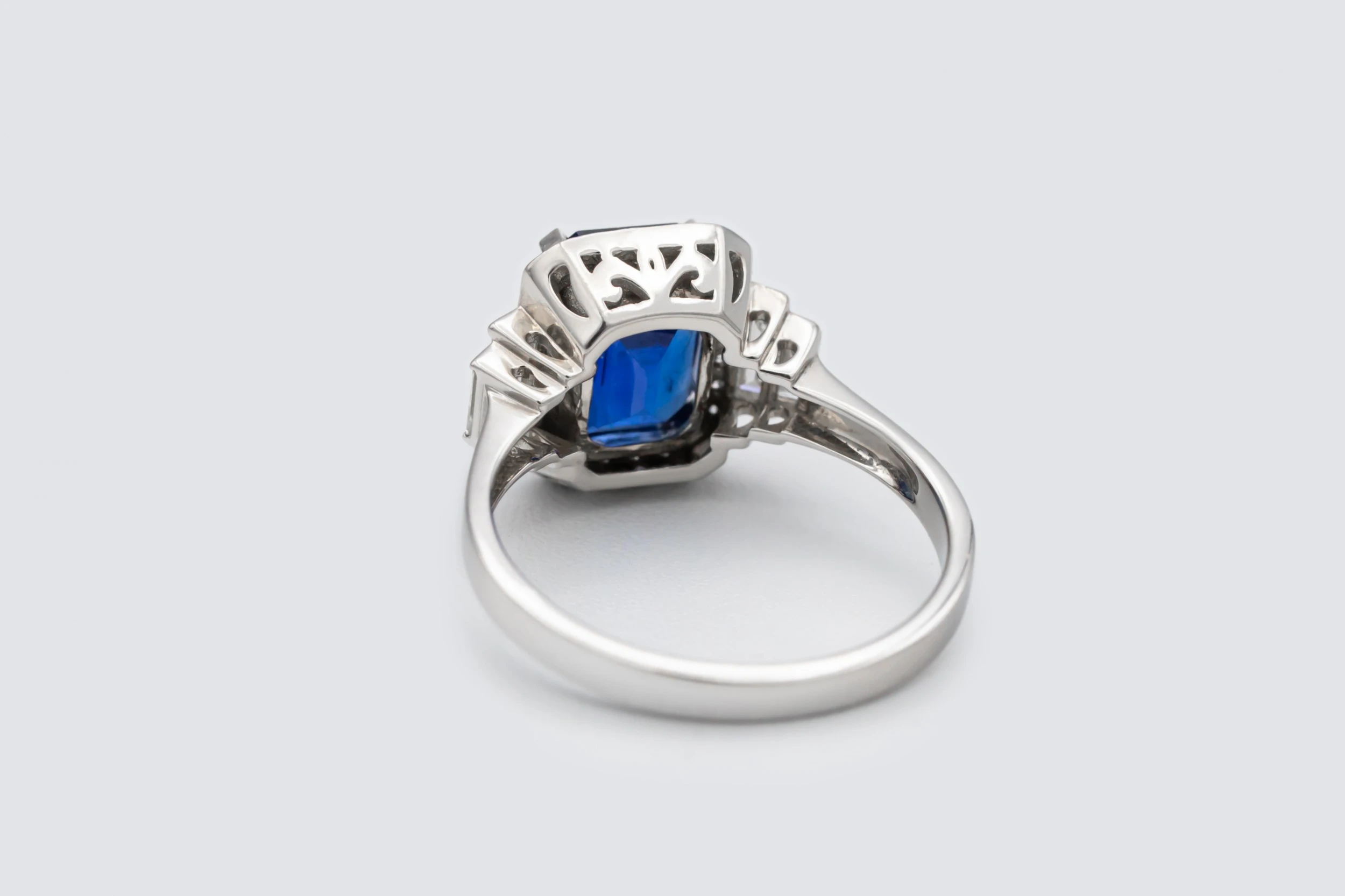 The square halo enhances the sapphire’s presence, adding brightness, symmetry, and refined glamour to the piece. Perfect for statement wear, special occasions, or as a distinctive alternative engagement ring, this design showcases exceptional craftsmanship and the modern elegance that defines AMPM Luxury Goods.