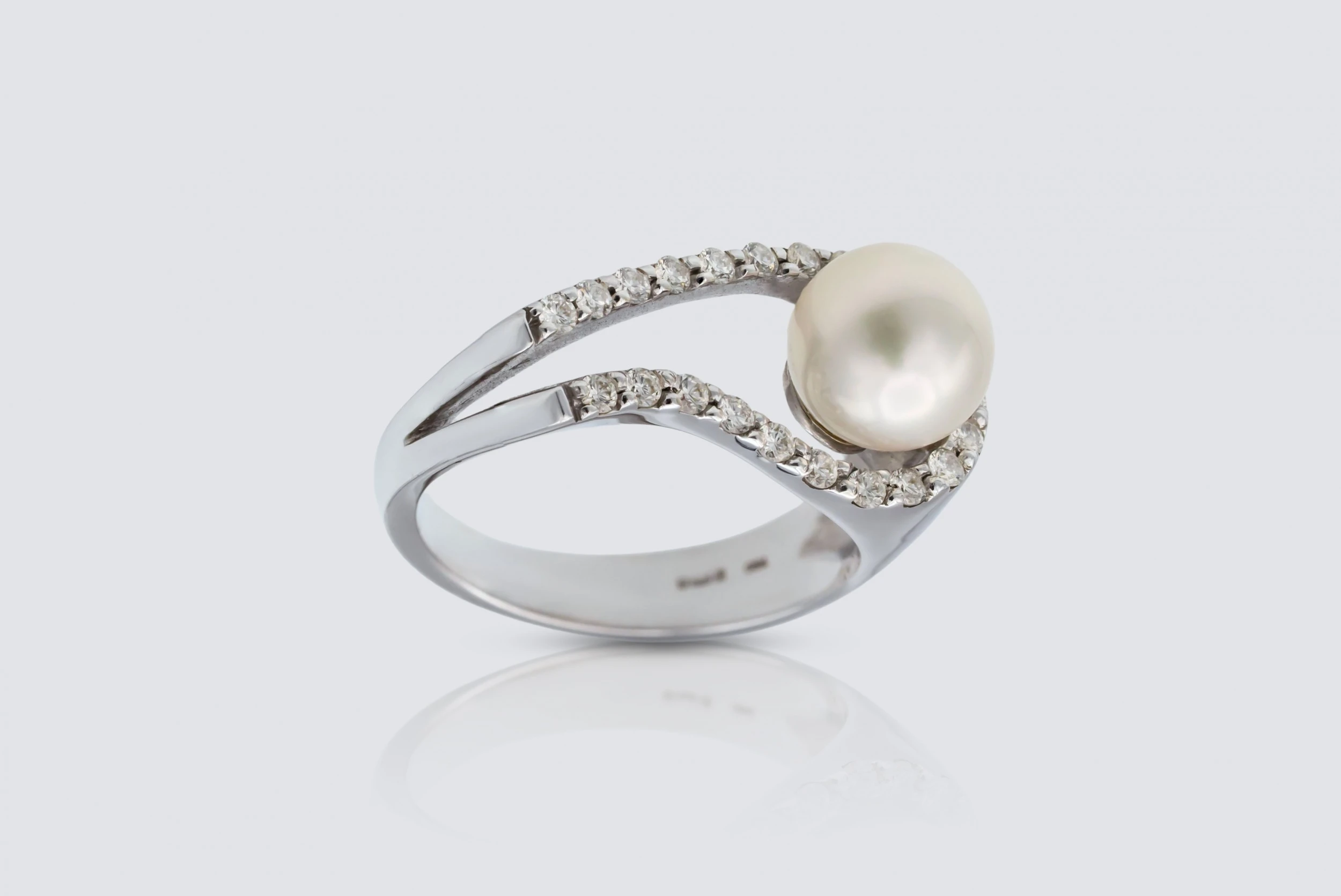 A refined and timeless design, this cultured pearl and diamond ring features a luminous cultured pearl paired with 0.33ct of natural brilliant round diamonds, all beautifully prong set in polished 18ct white gold. The pearl’s soft sheen contrasts elegantly with the bright sparkle of the diamonds, creating a harmonious and luxurious balance of texture and light.