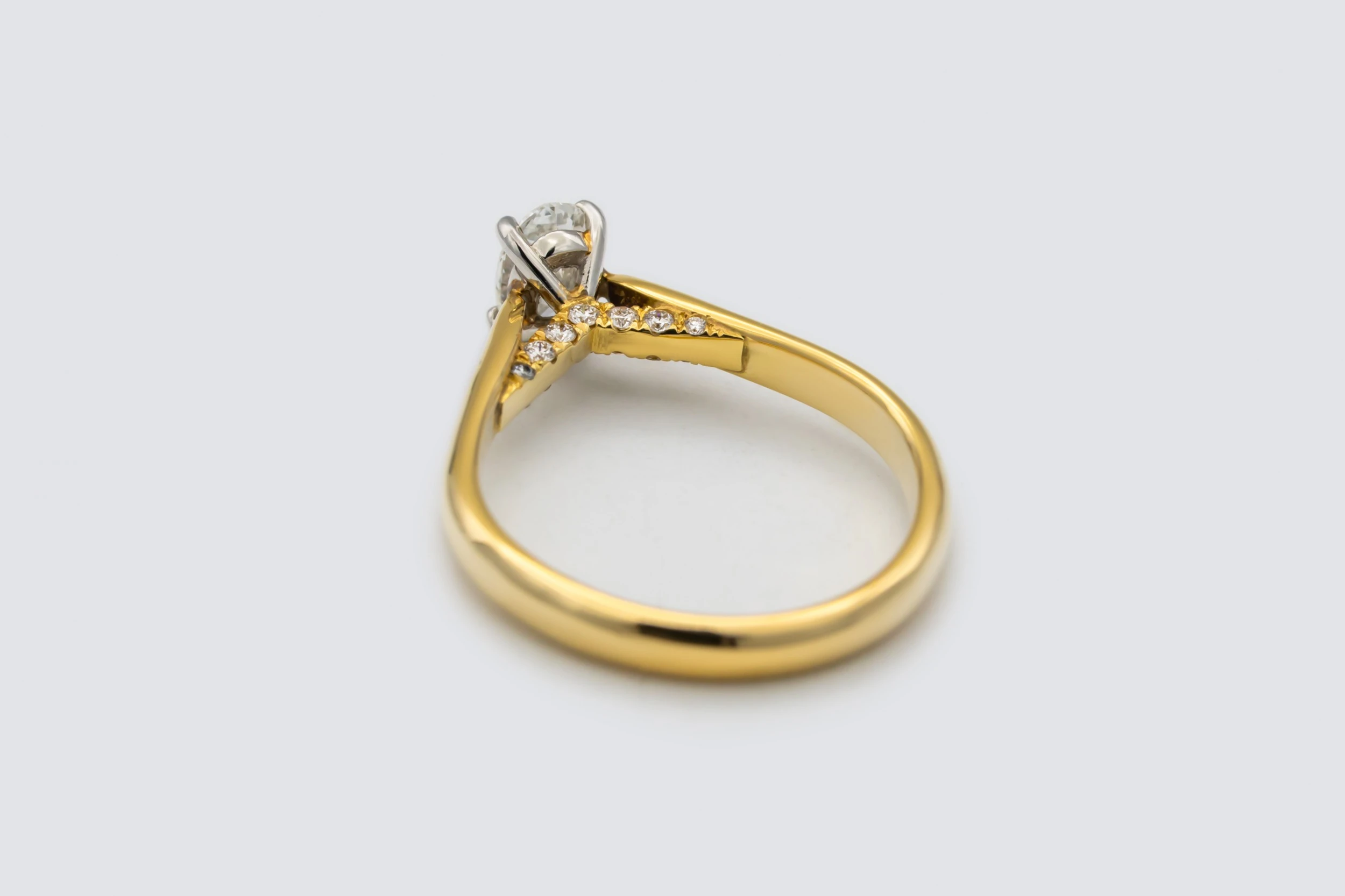 An elegant and timeless design, this oval cut diamond engagement ring features a stunning 0.59ct natural diamond, graded G colour with exceptional VVS1 clarity. The stone is beautifully prong set in warm 18ct yellow gold, allowing maximum light to reach the diamond for an intense and captivating brilliance.