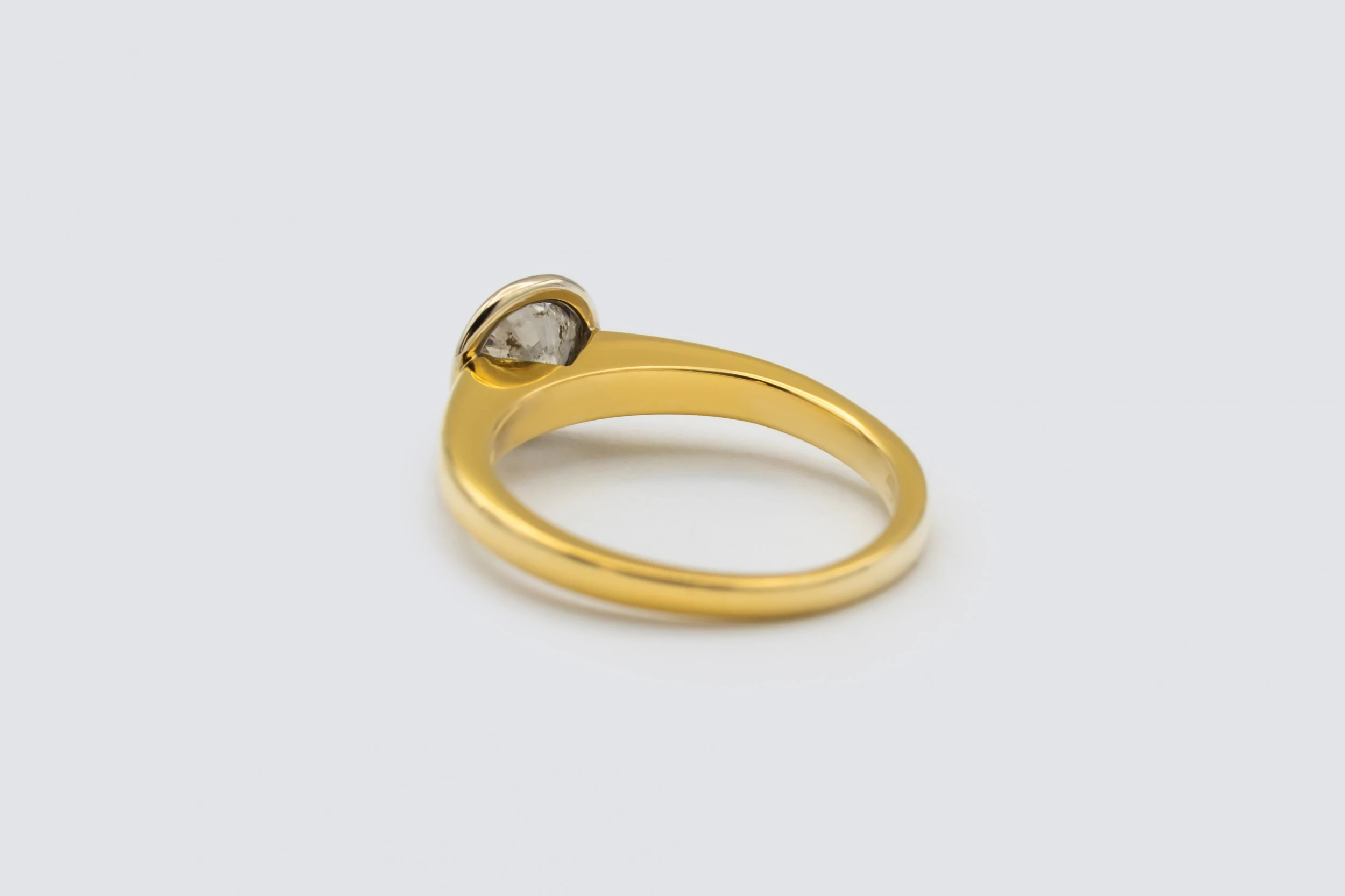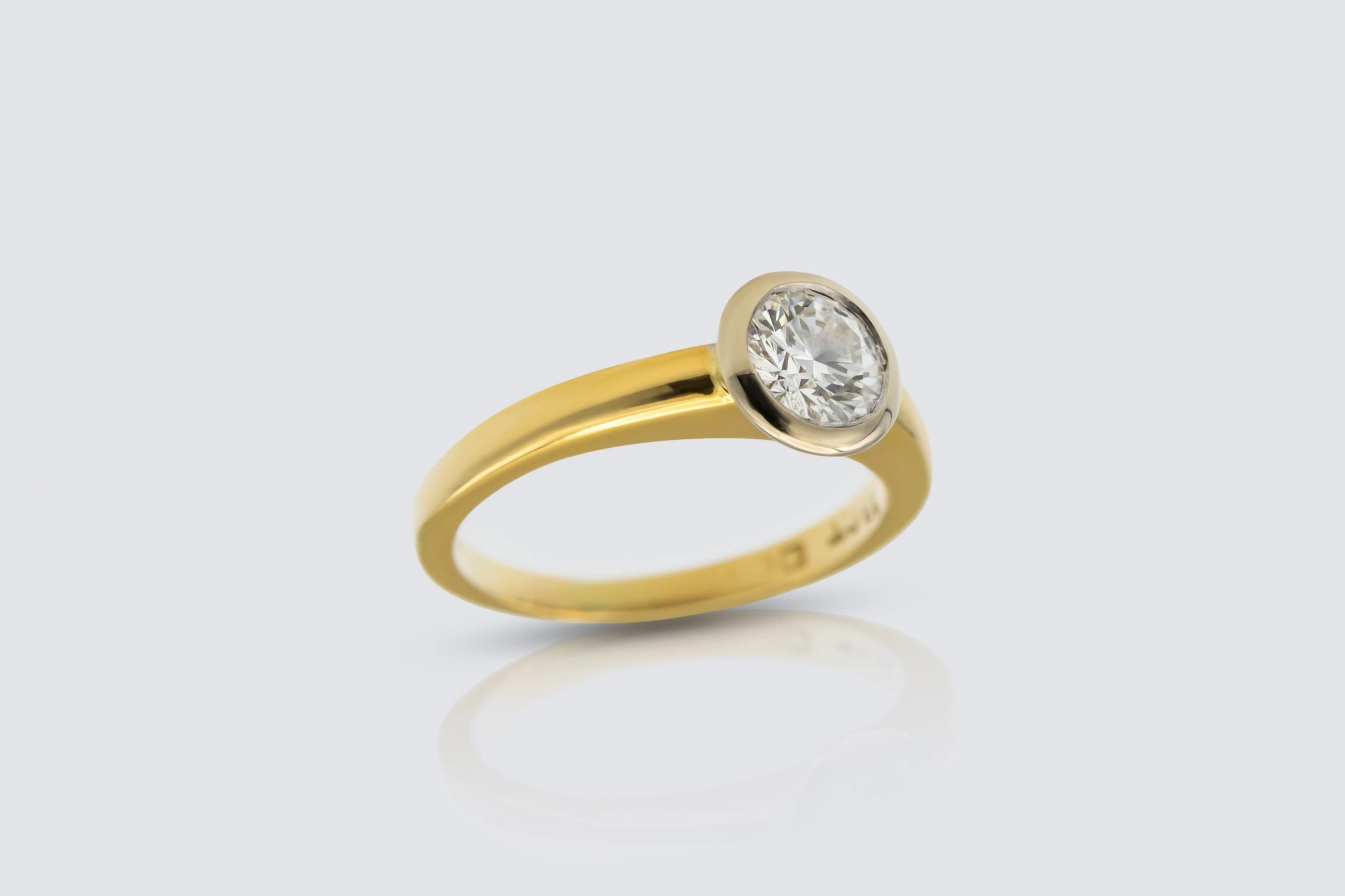 A refined expression of contemporary elegance, this natural brilliant cut diamond ring features a 0.75ct diamond graded G colour and SI clarity, set in a smooth rubover setting crafted from rich 18ct yellow gold. The clean lines and polished finish highlight the diamond’s natural brilliance while offering a modern, minimalist aesthetic.