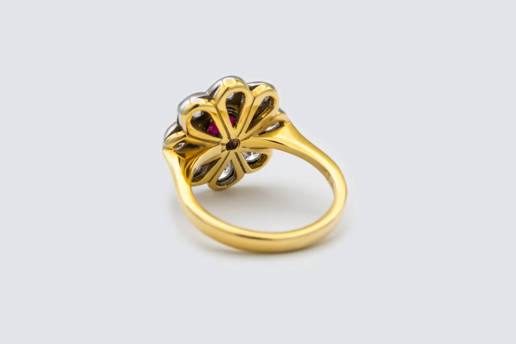 The 1.34ct ruby forms the heart of the design, its warmth enhanced by the sparkle of 1.48ct of surrounding diamonds that reflect light from every angle. With its floral inspiration and refined detailing, this piece captures the essence of timeless glamour while maintaining a fresh, contemporary feel. Perfect for collectors, statement wear, or a luxurious touch of everyday elegance.