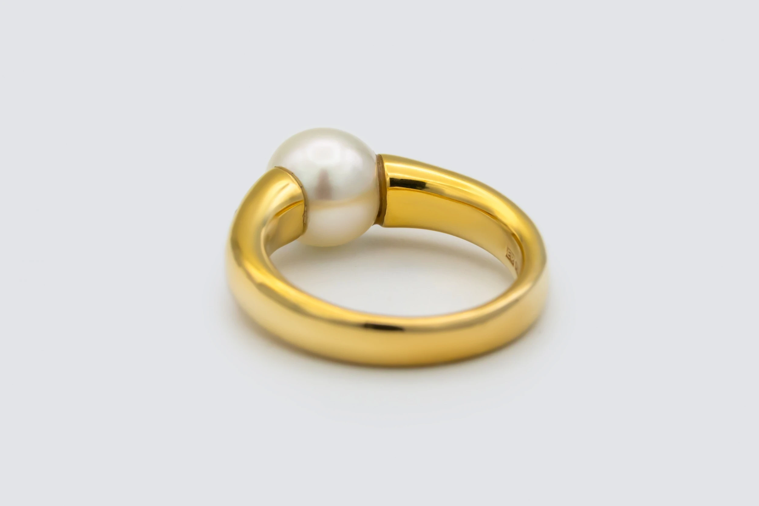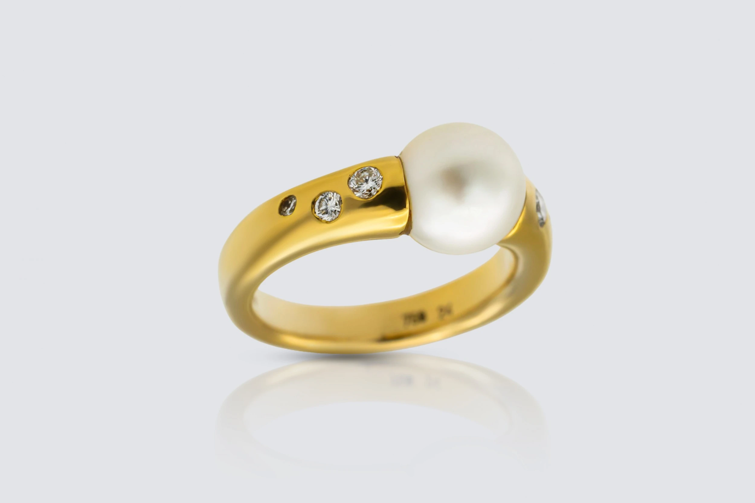 A refined and graceful design, this pearl and diamond ring features a luminous Akoya pearl paired with a delicate natural brilliant round diamonds, elegantly rubover set in polished 18ct yellow gold. The pearl’s soft lustre contrasts beautifully with the diamond’s crisp sparkle, creating a timeless and sophisticated aesthetic.