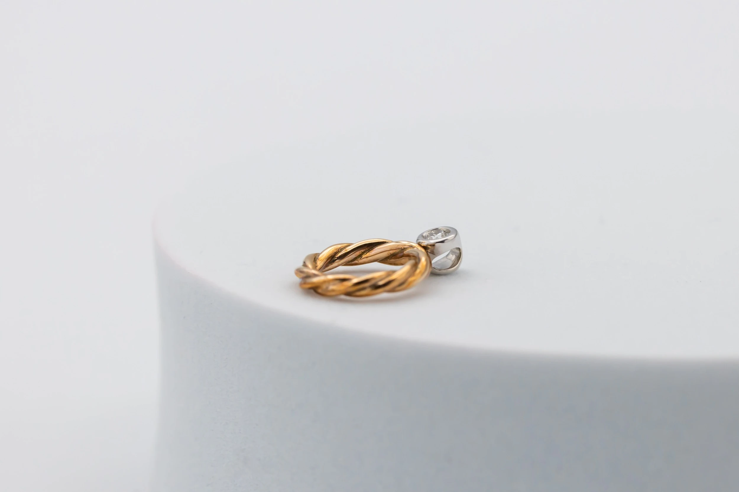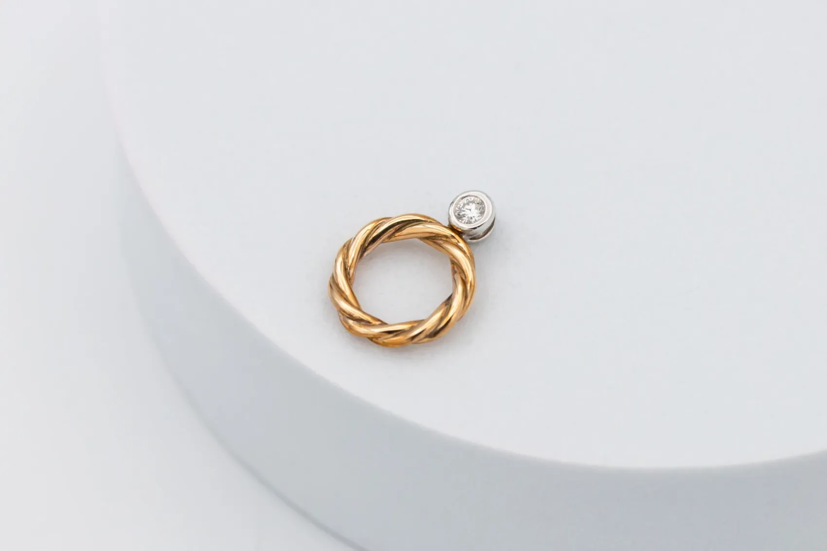 A modern and elegant mixed-metal design, this diamond circle pendant features 0.57ct of natural brilliant round diamonds, beautifully set across a refined blend of 9ct rose gold and 9ct white gold. The open-circle motif symbolises unity and eternity, while the warm rose gold contrasts gracefully with the cool brilliance of the white gold and diamonds.