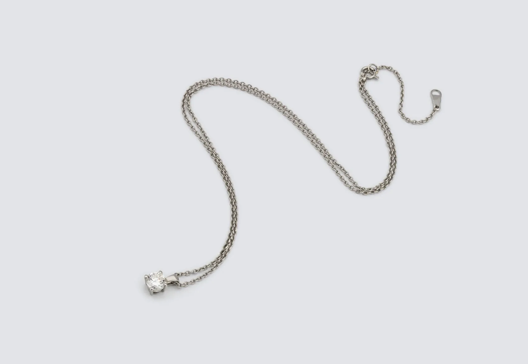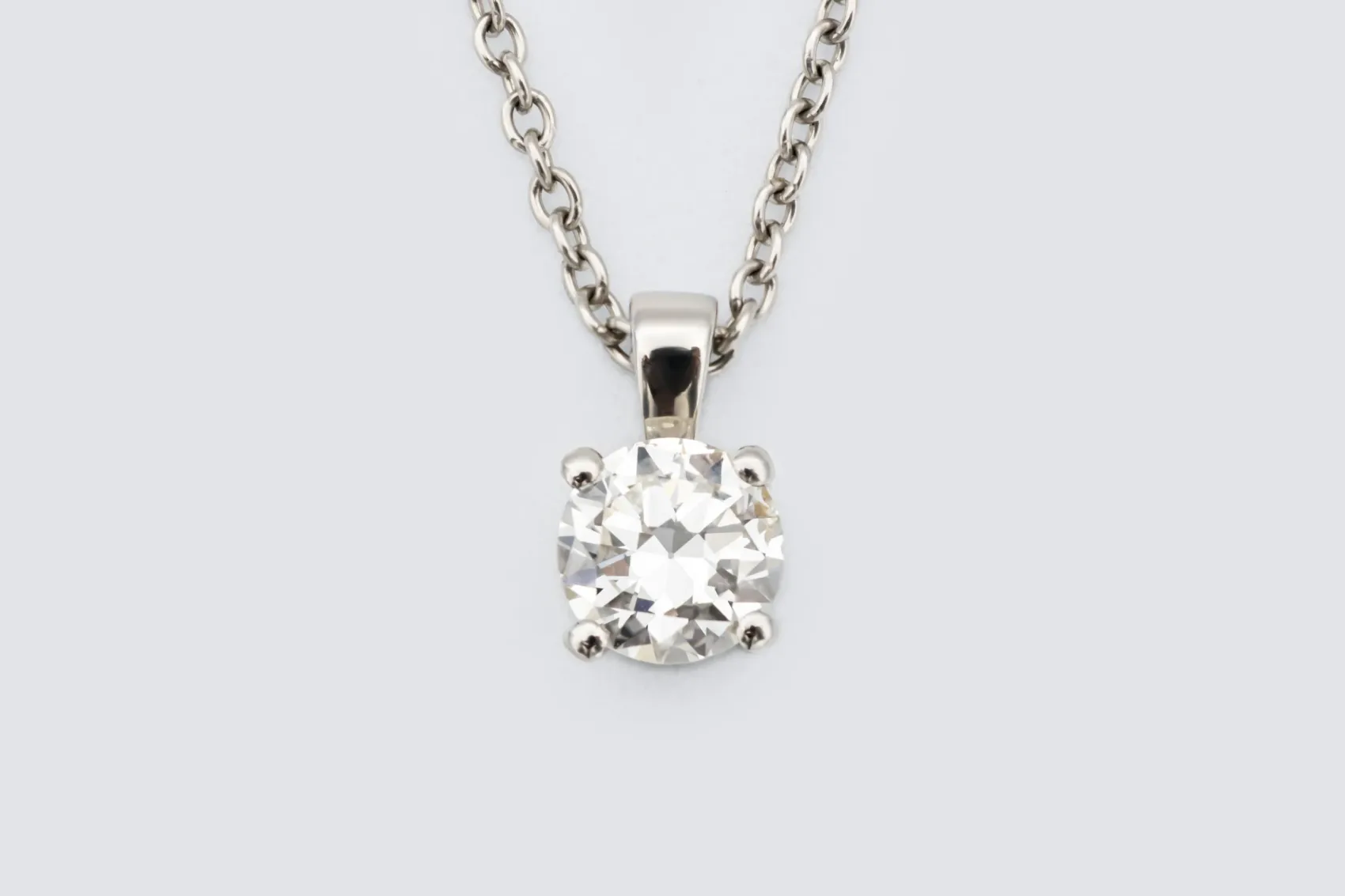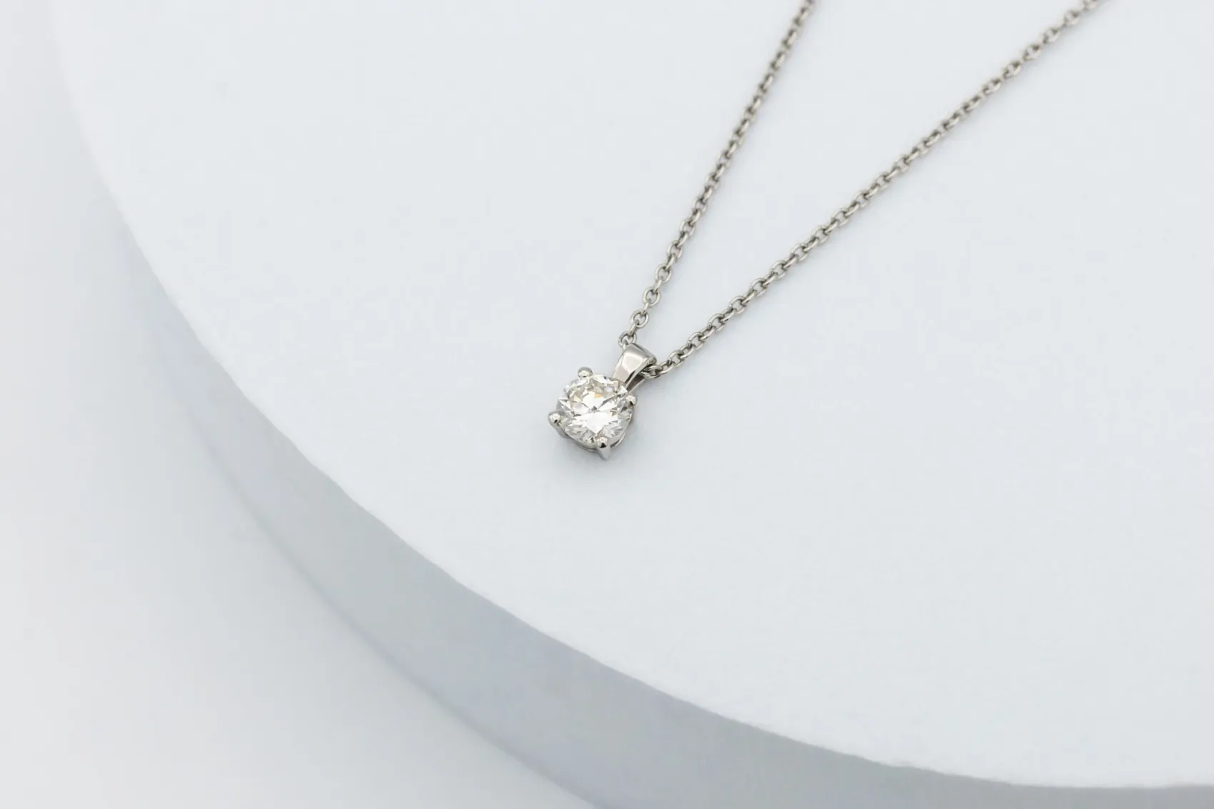 The bright, crisp tone of platinum enhances the purity and fire of the diamond, creating a refined and modern look that catches the light with every movement. With its classic silhouette, exceptional diamond quality, and meticulous craftsmanship, this necklace embodies the luxury and contemporary refinement of AMPM Luxury Goods.