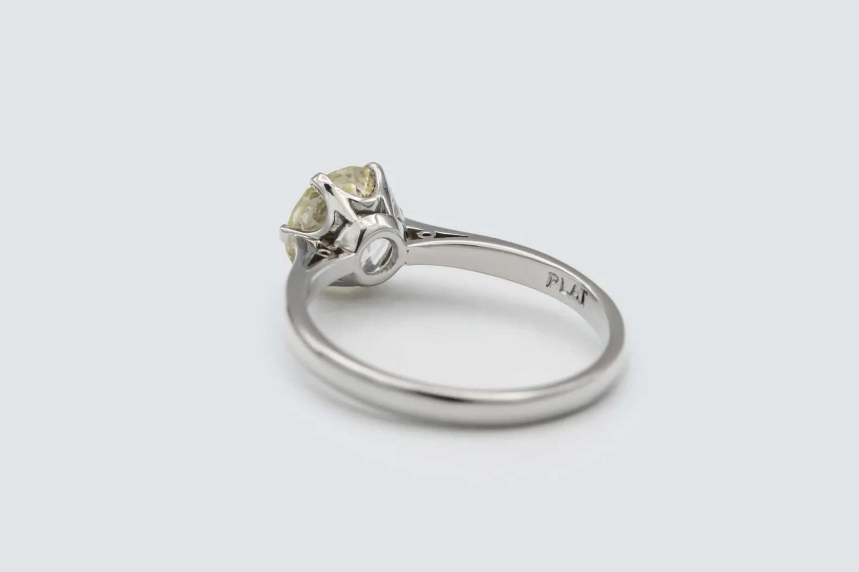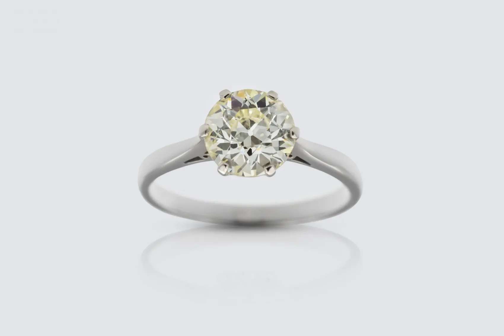 A timeless symbol of elegance, this brilliant cut diamond engagement ring features a striking 1.44ct natural round diamond, graded I colour with SI clarity. The diamond is exquisitely prong set in sleek platinum, allowing maximum light to reach the stone for exceptional brilliance and fire.