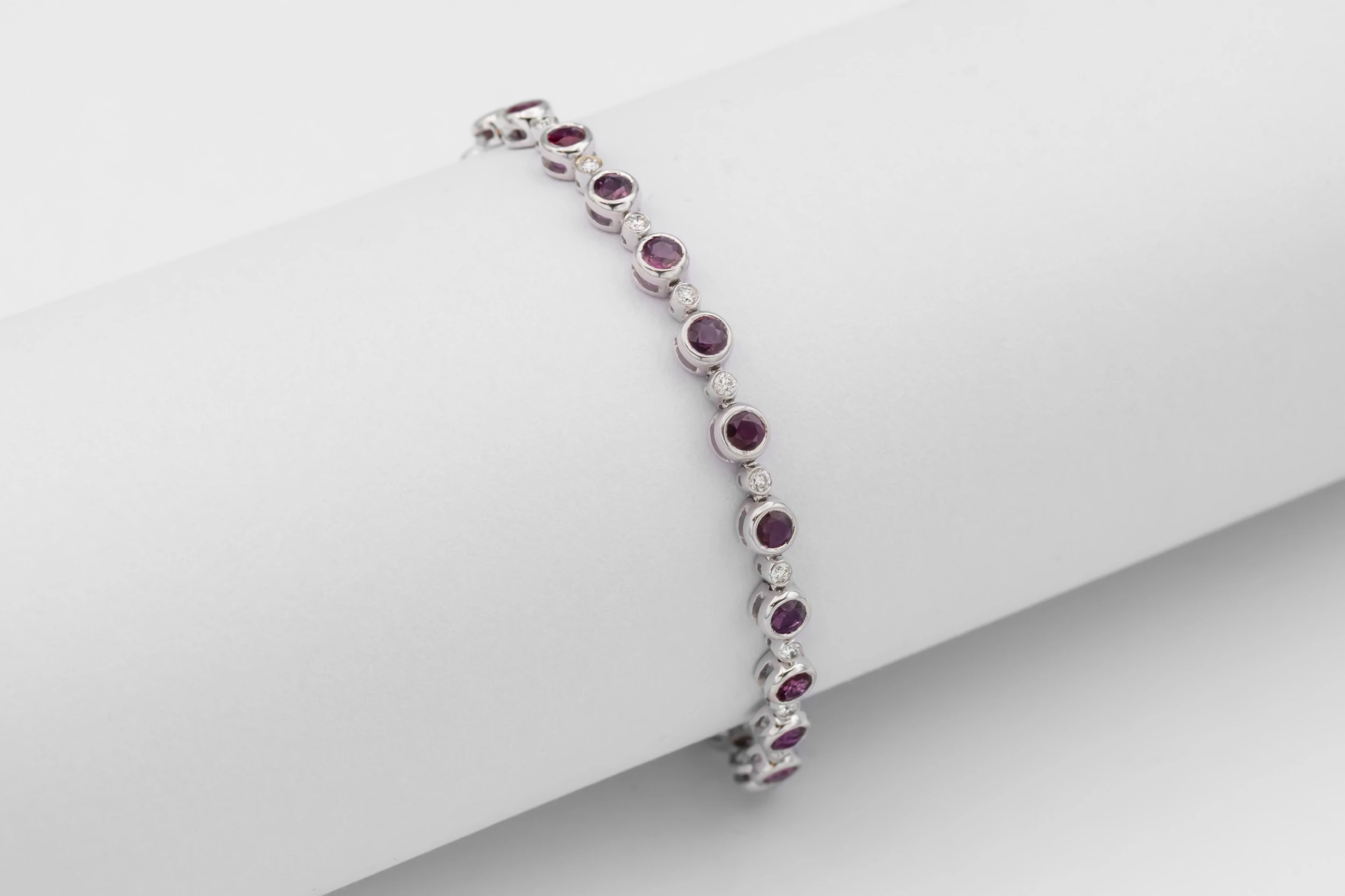 18ct White Gold Ruby and Diamond Rubover Bracelet