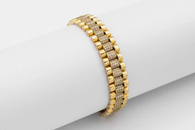 9ct Yellow Gold Diamond Rolex Style Bracelet