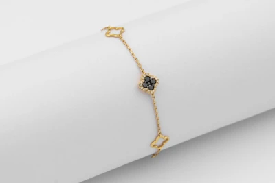 18ct Yellow Gold Diamond and Black Diamond Clover Bracelet