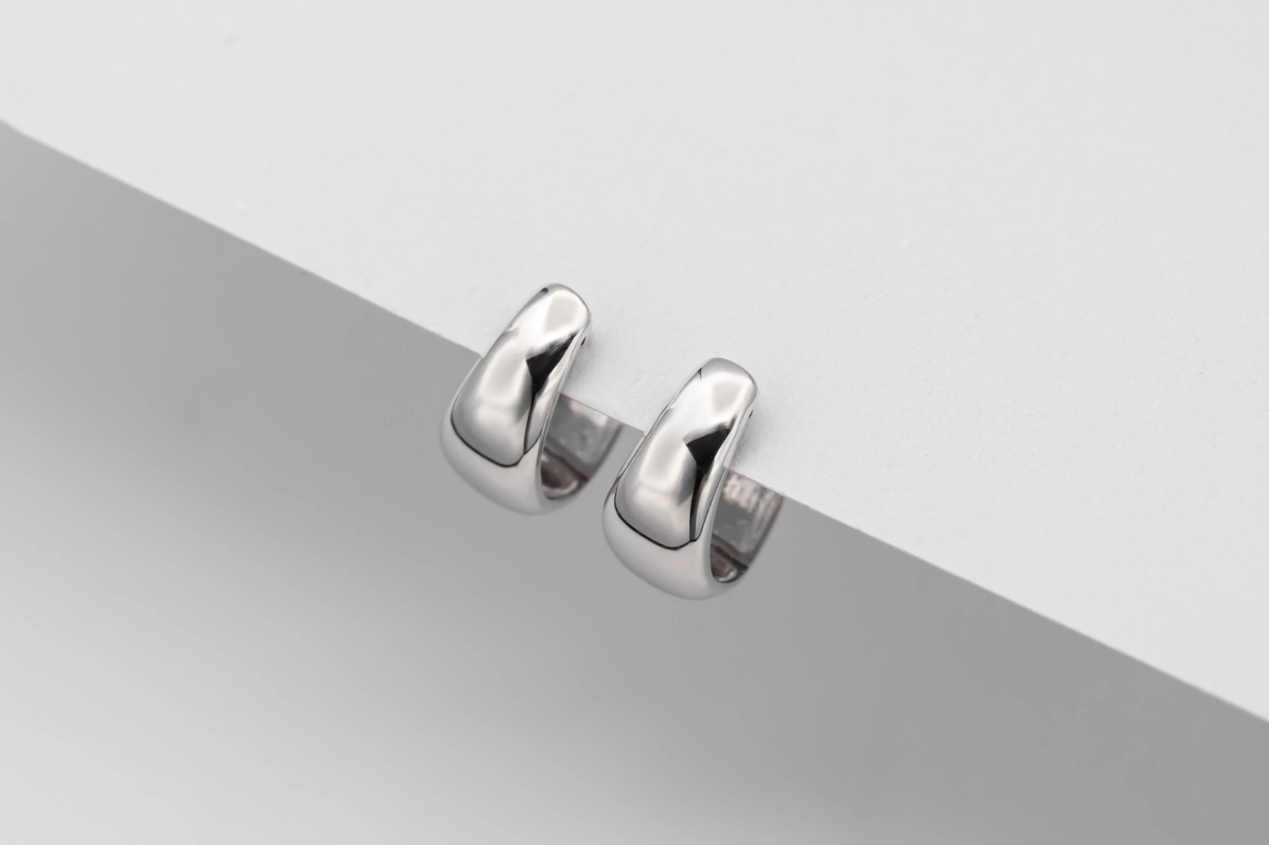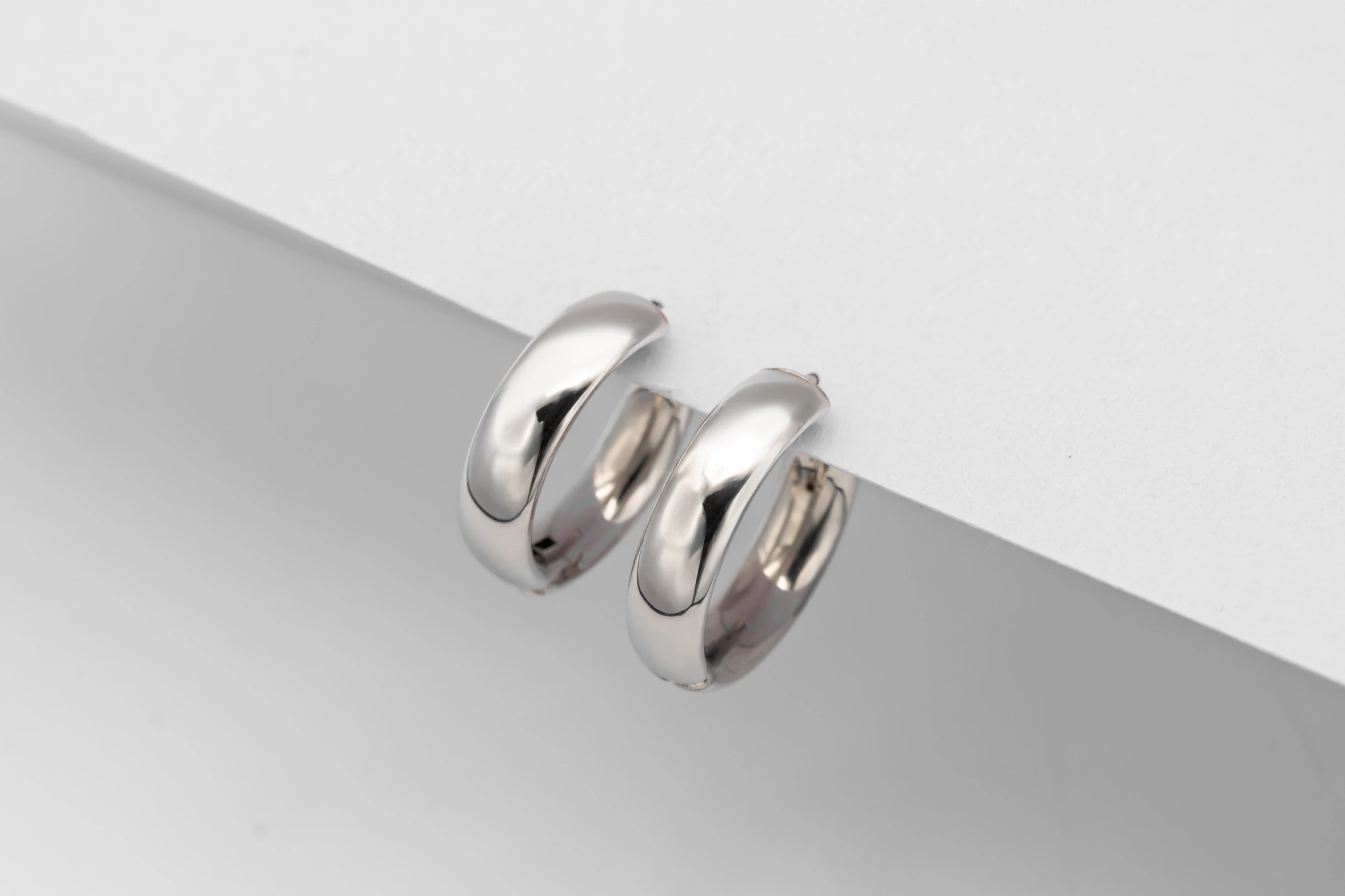 9ct White Gold 1.5cm Huggie Hoop Earrings