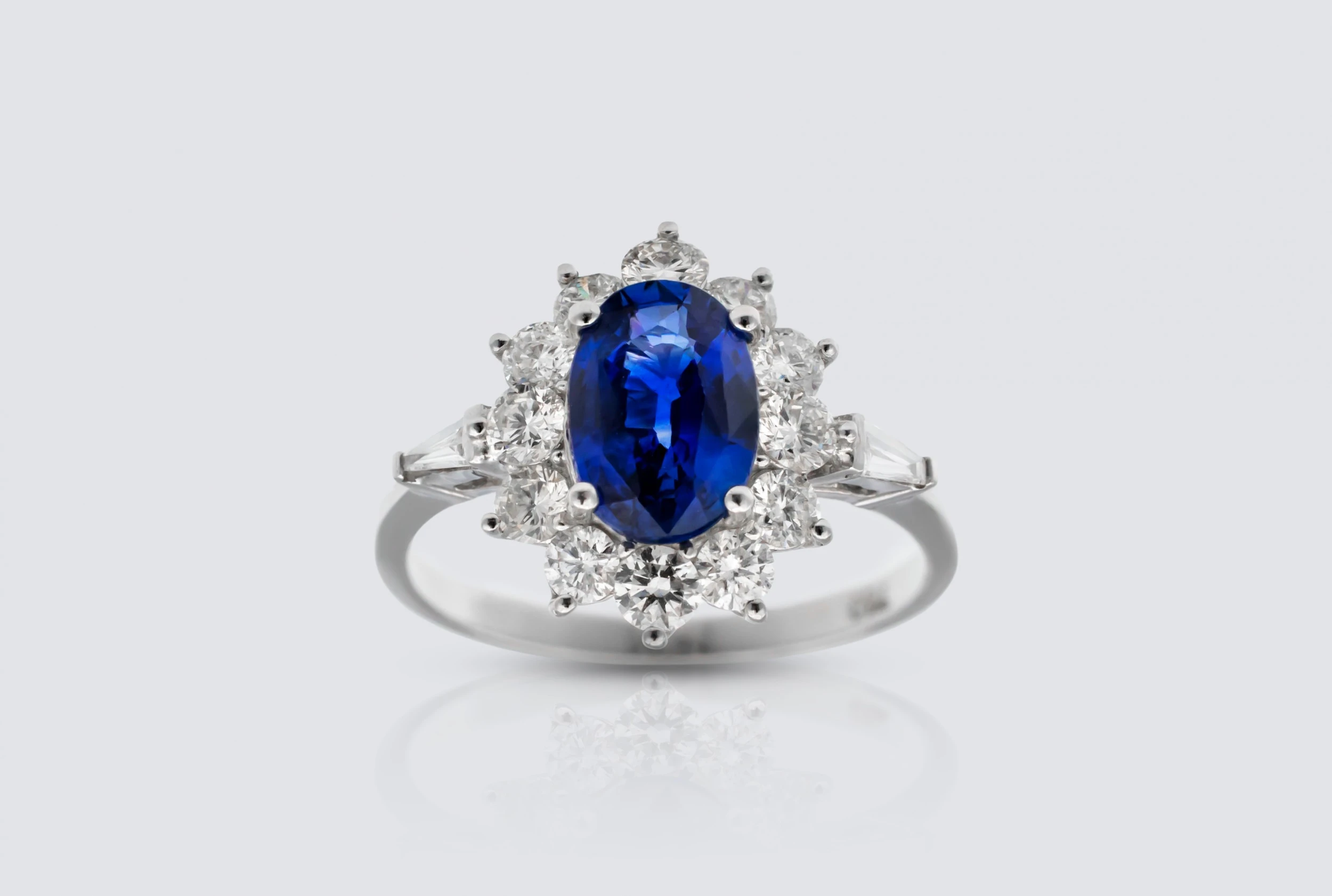 18ct White Gold 1.75ct Sapphire and 1.00ct Diamond Cluster Ring Size N