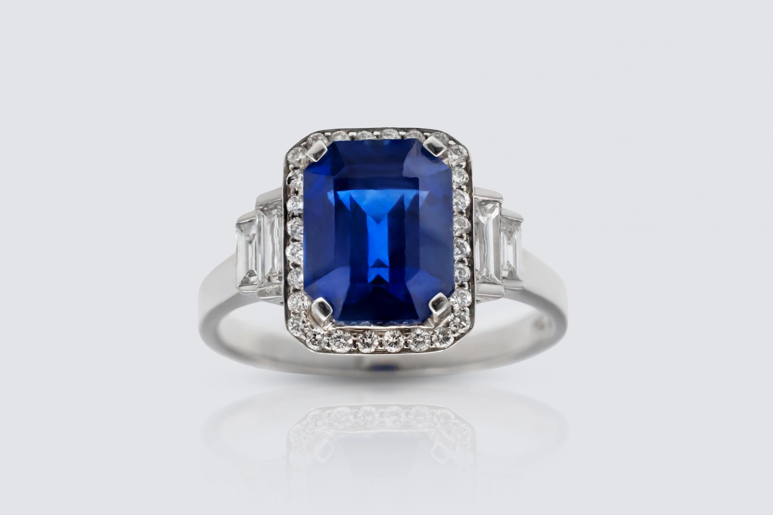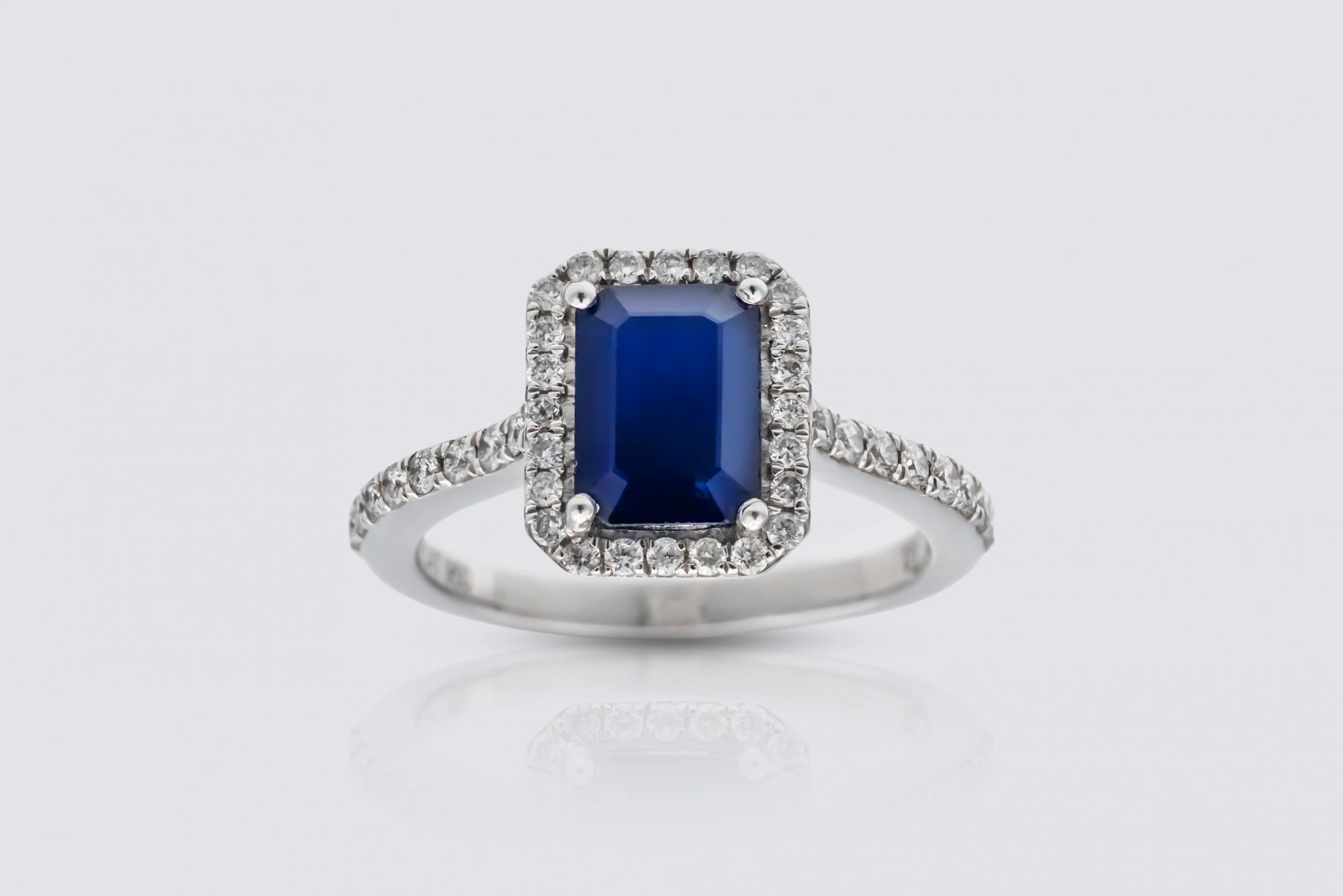 18ct White Gold 2.30ct Sapphire and 0.60ct Diamond Halo Ring Size N