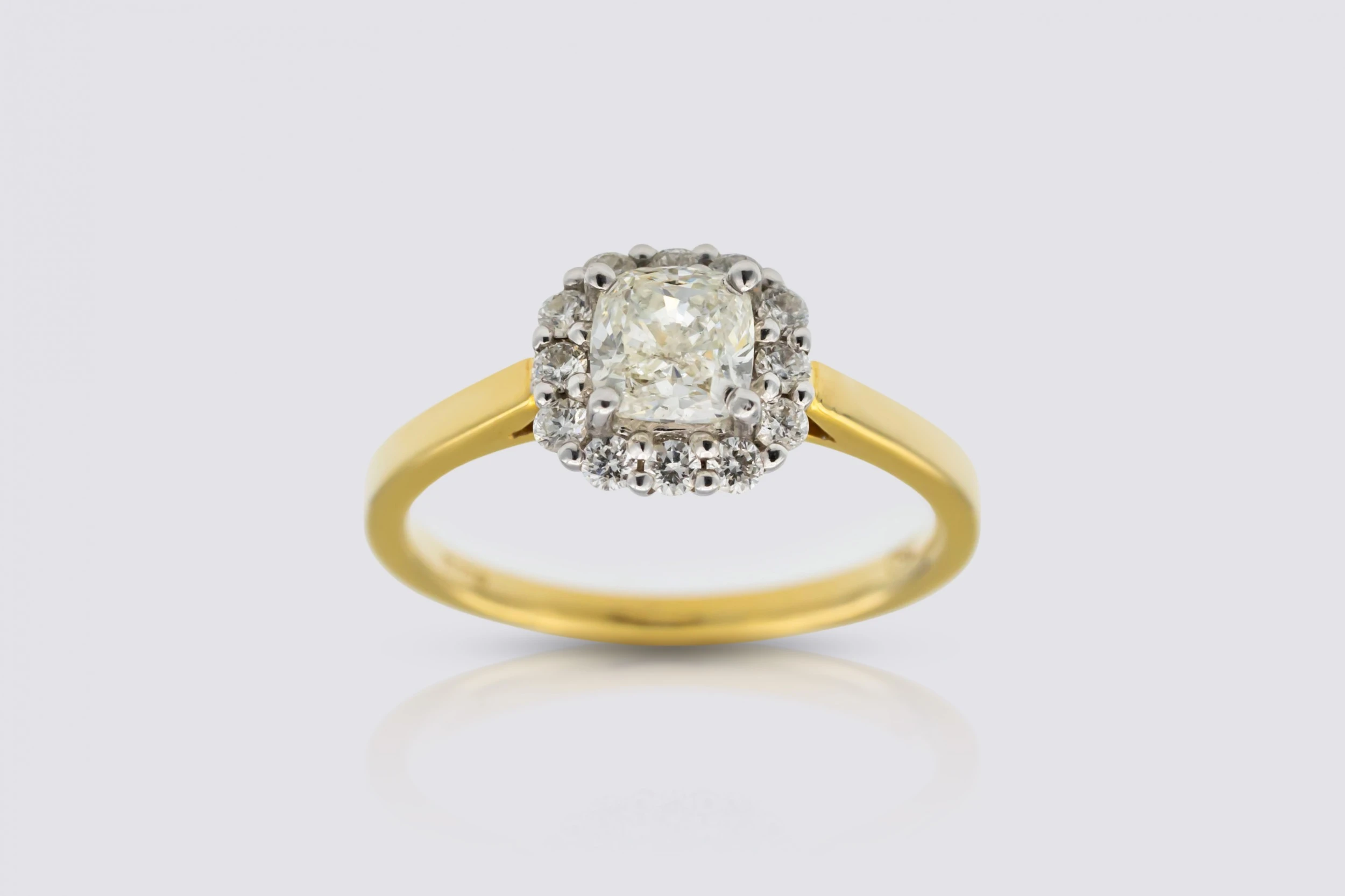 18ct Yellow Gold 0.72ct Cushion Cut Diamond Engagement Ring with 0.26ct Halo Size L