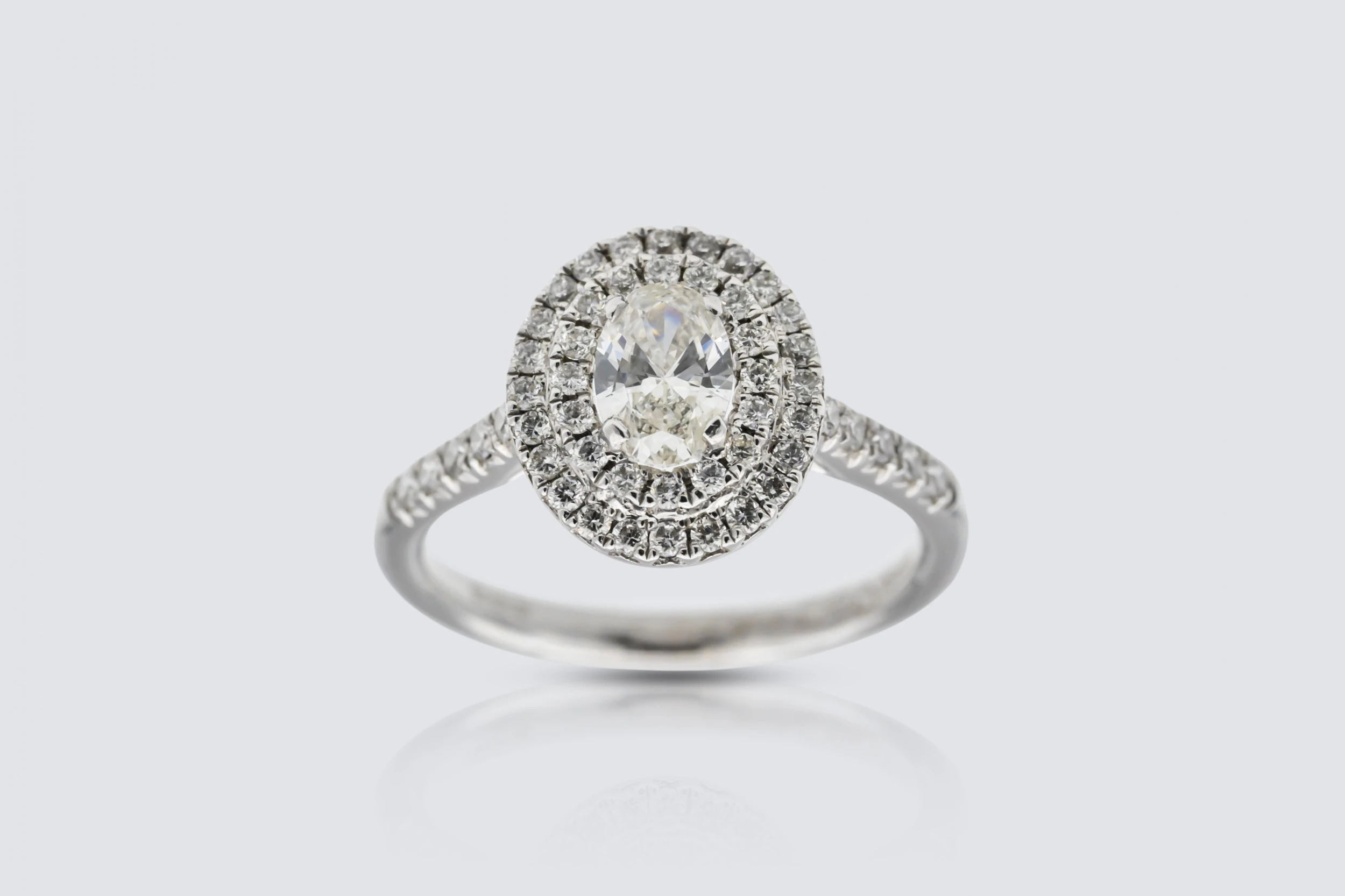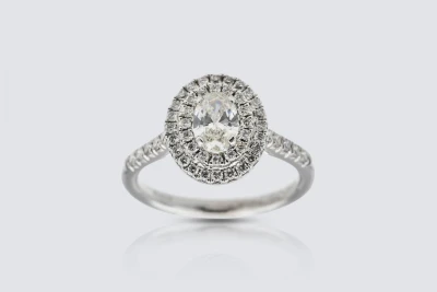 Platinum 0.50ct Oval Diamond Double Halo Ring with 0.41ct Shoulder and Halo Diamonds Size M