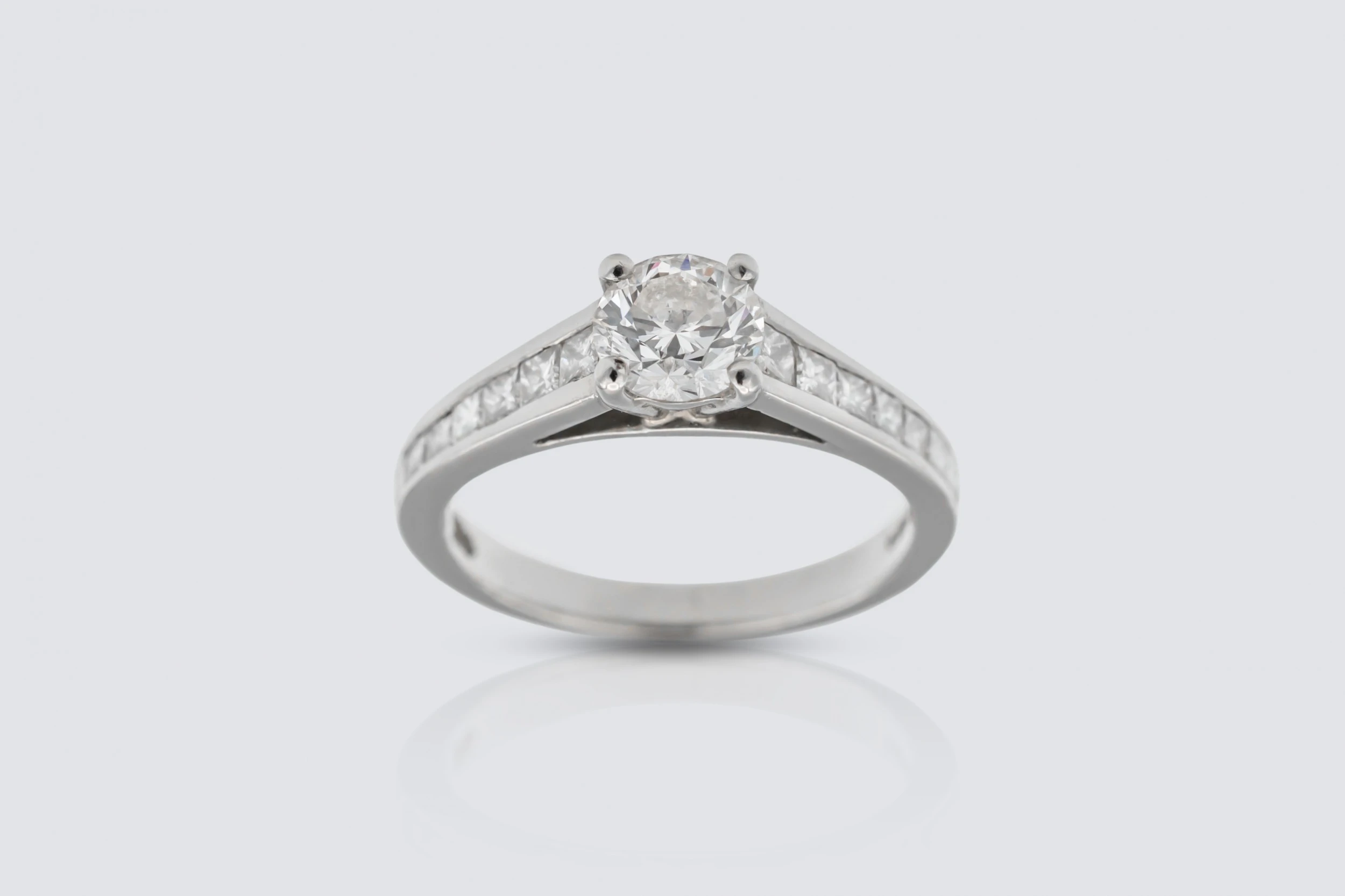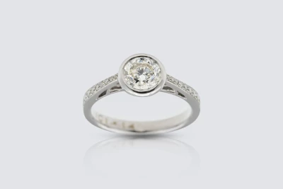 18ct White Gold 1.01ct Diamond Brilliant Cut Rubover Engagement Ring with 0.14ct Shoulder Diamonds