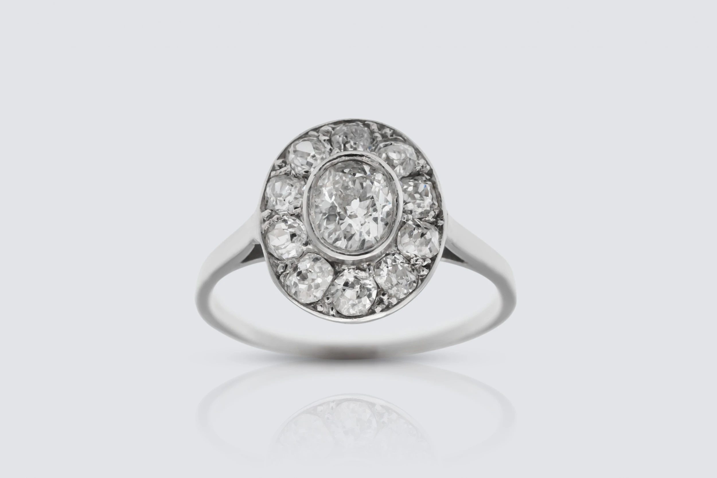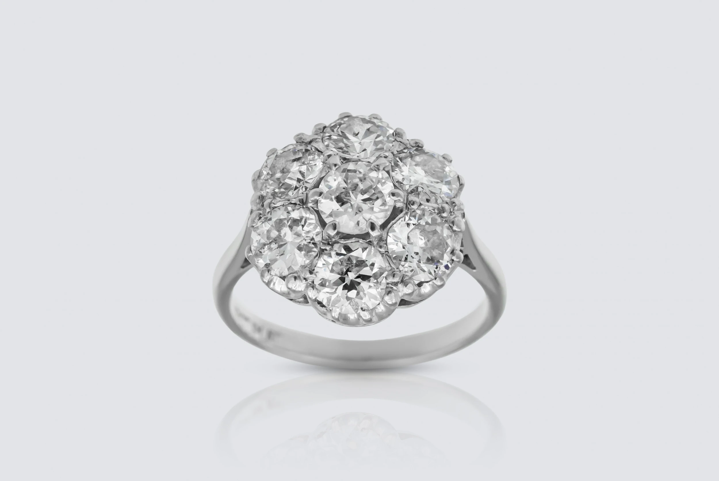 18ct White Gold and Platinum 2.73ct Diamond Cluster Ring Size L 1/2