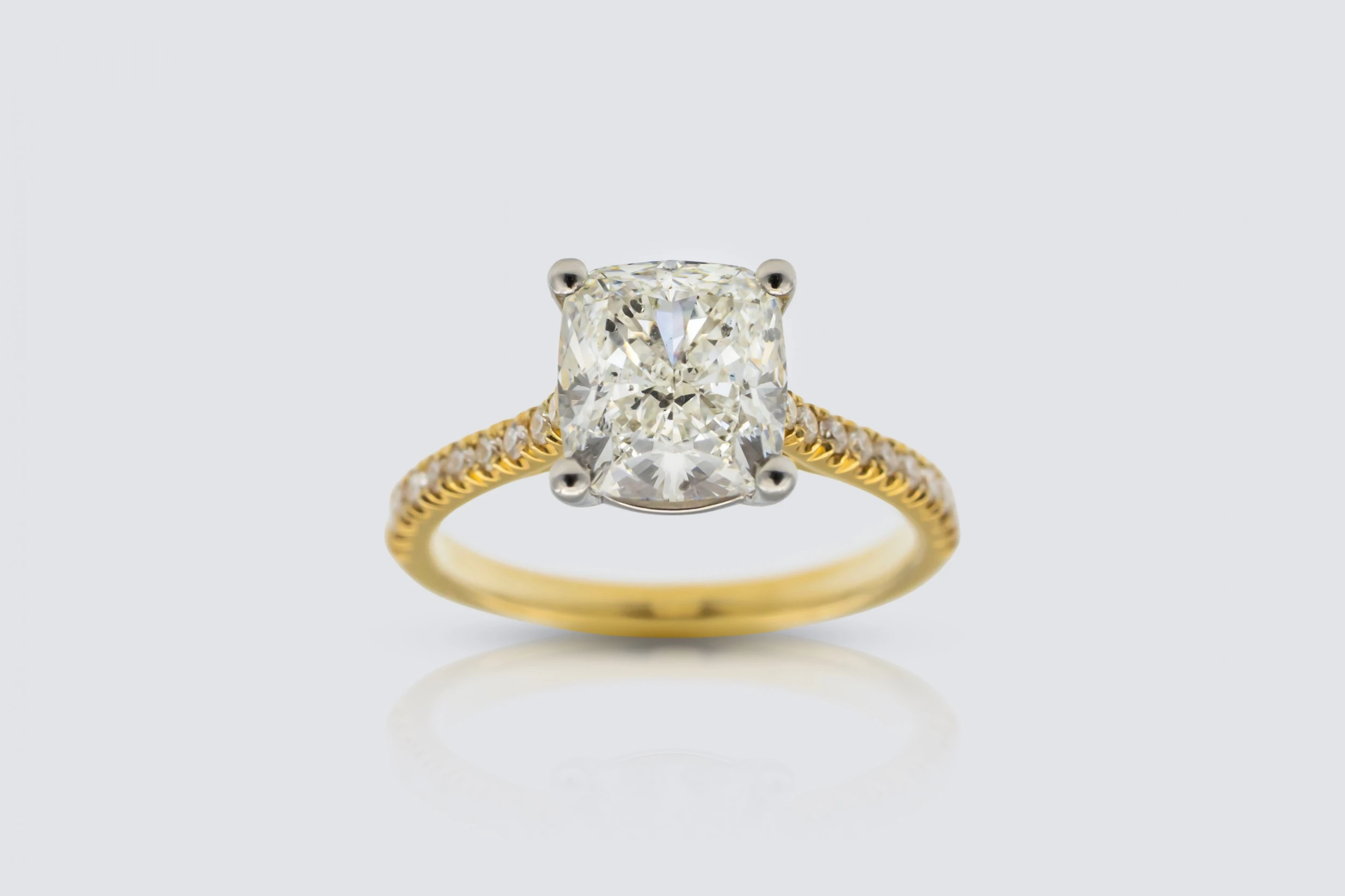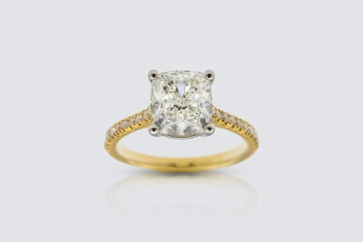 18ct Yellow Gold 2.50ct Cushion Cut Diamond Engagement Ring with 0.22ct Shoulder Diamonds Size K