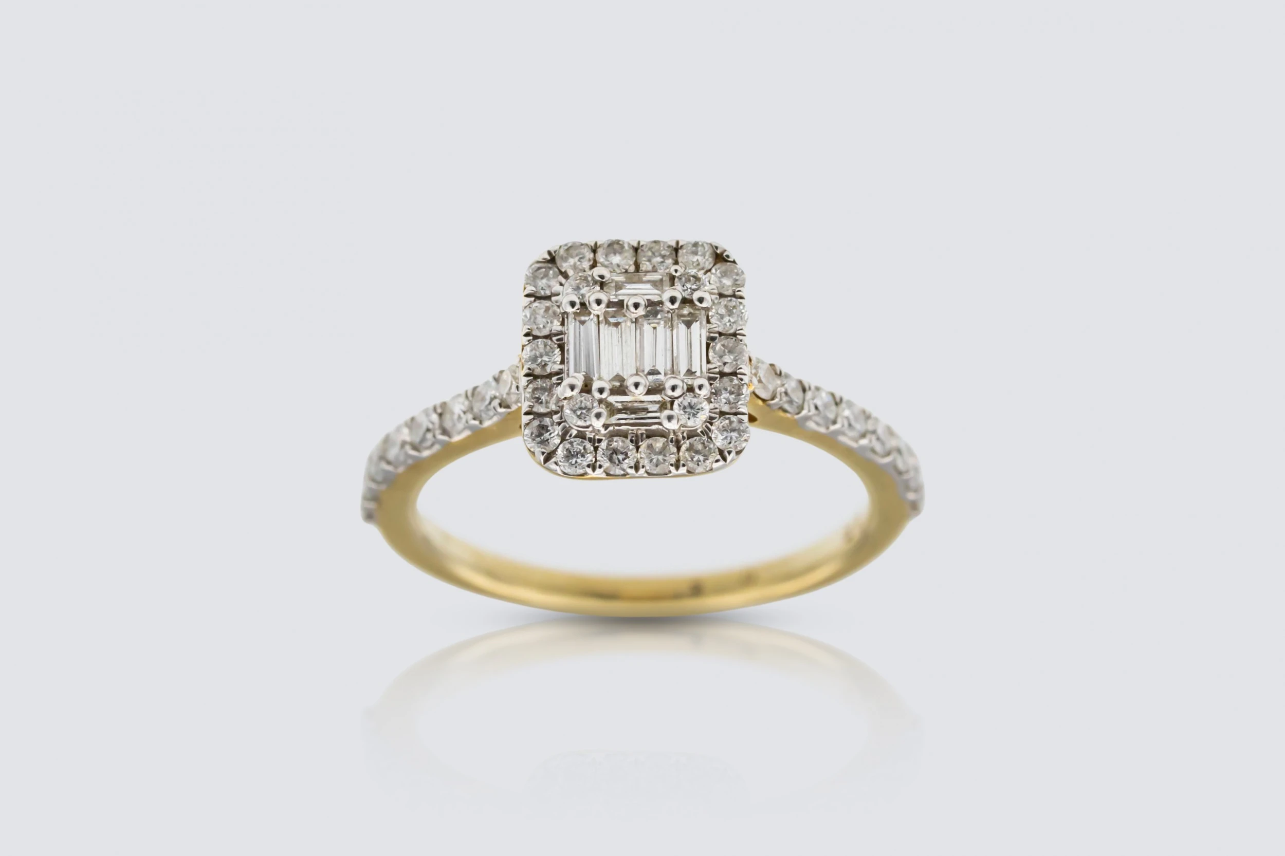 9ct Yellow Gold 0.61ct Baguette and Round Cut Diamond Ring Size L