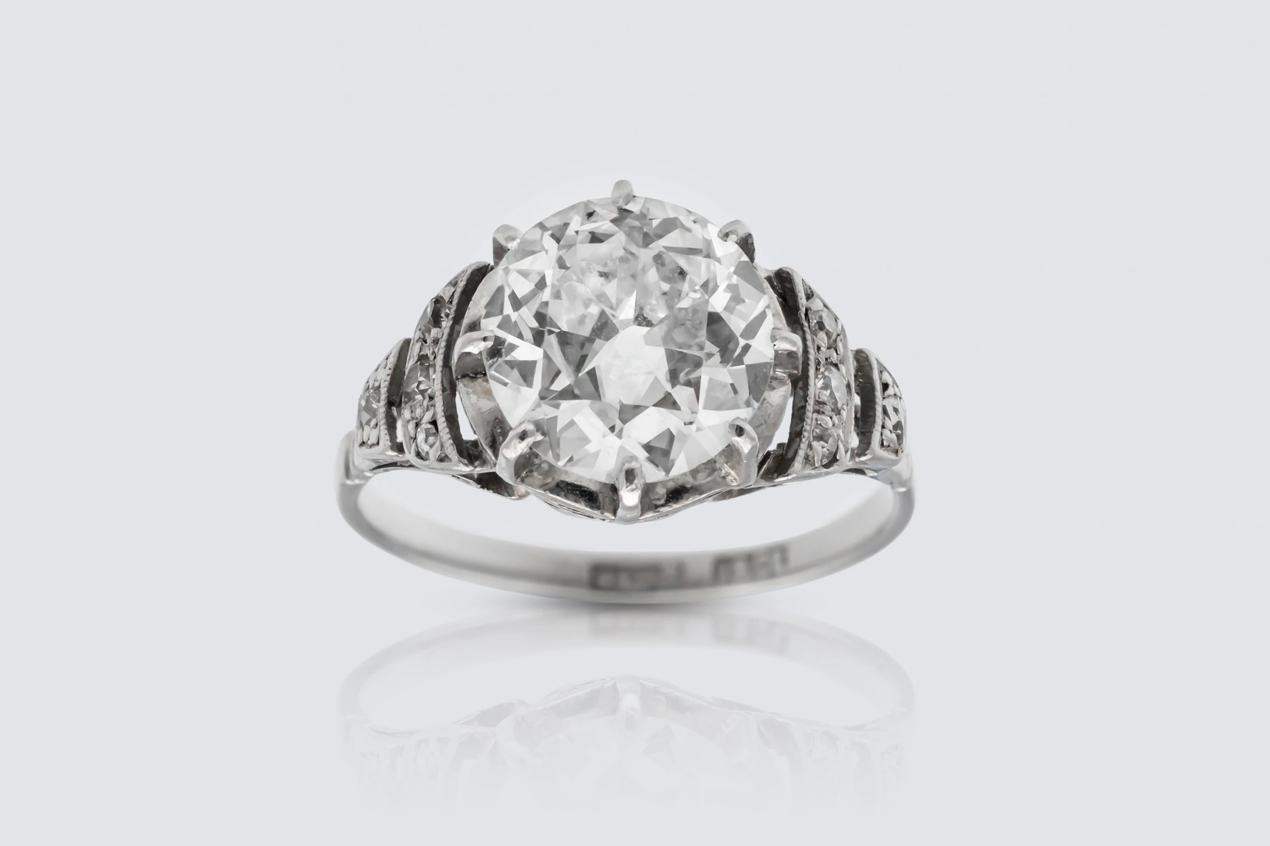 18ct White Gold and Platinum 3.10ct Solitaire Diamond Art Deco Ring Size M