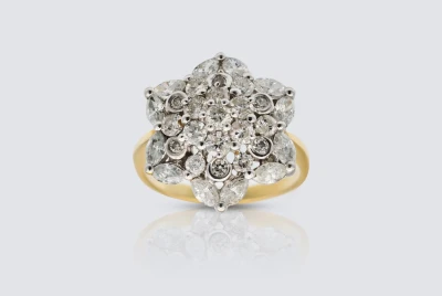 18ct Yellow Gold And Platinum Flower Diamond Cluster Ring 2ct