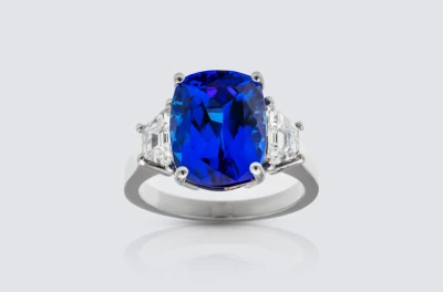 Platinum 7.14ct Tanzanite and 0.84ct Diamond Three Stone Ring Size N