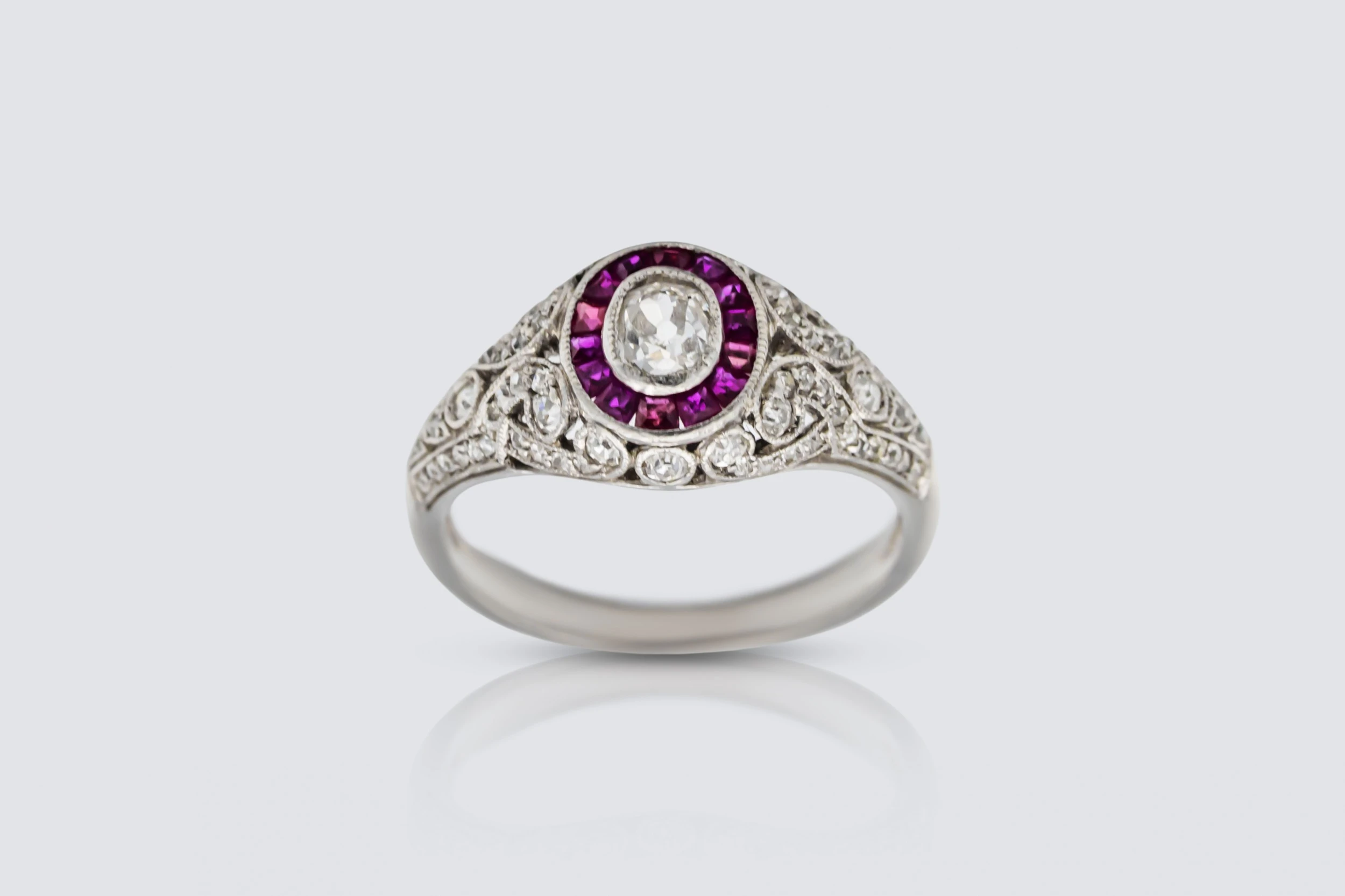 18ct White Gold 2.52ct Ruby and 1.75ct Diamond Cluster Ring Size M