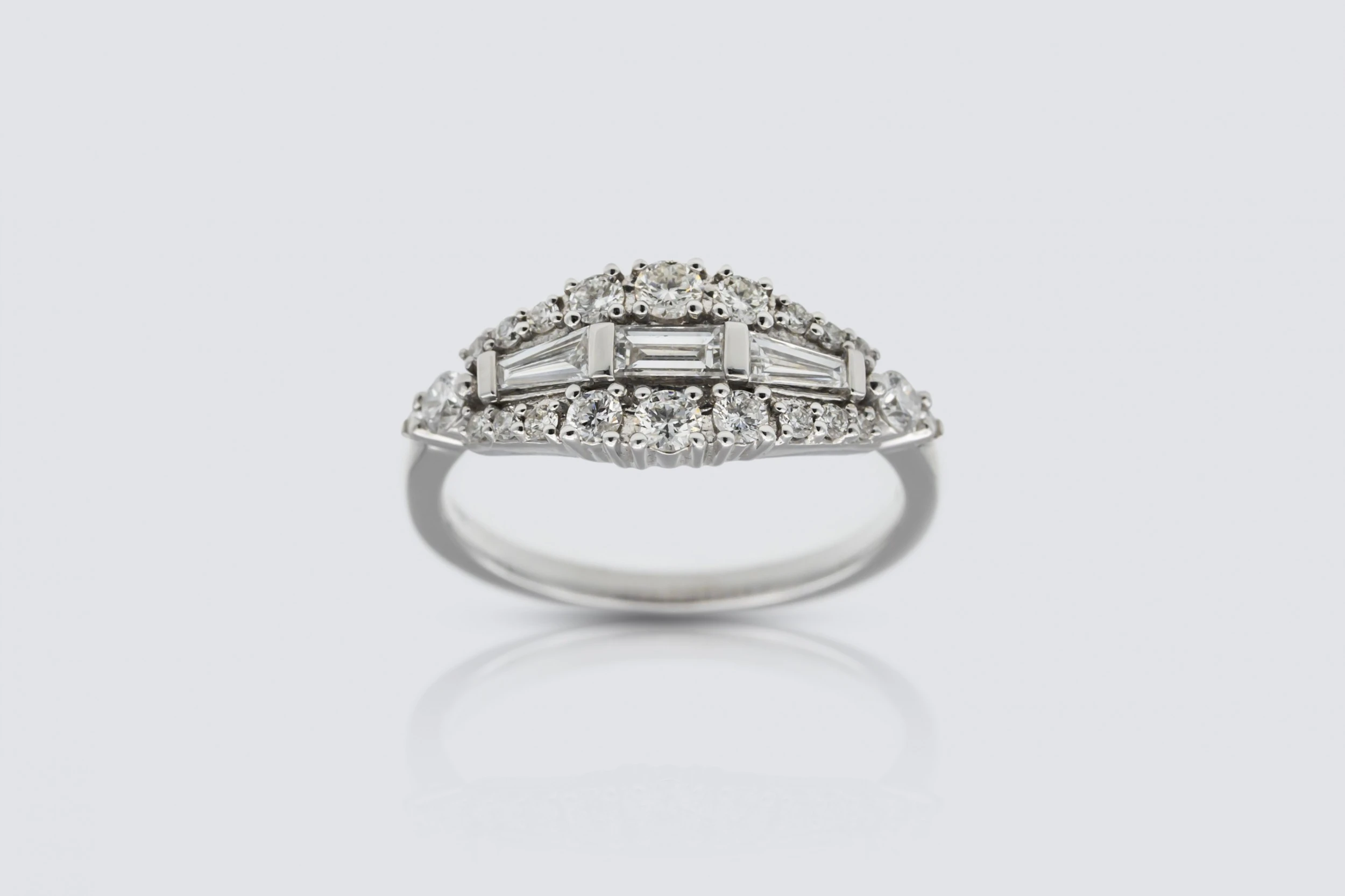 Baguette and Brilliant Cut Diamond Ring in Platinum 0.92ct E SI Size M