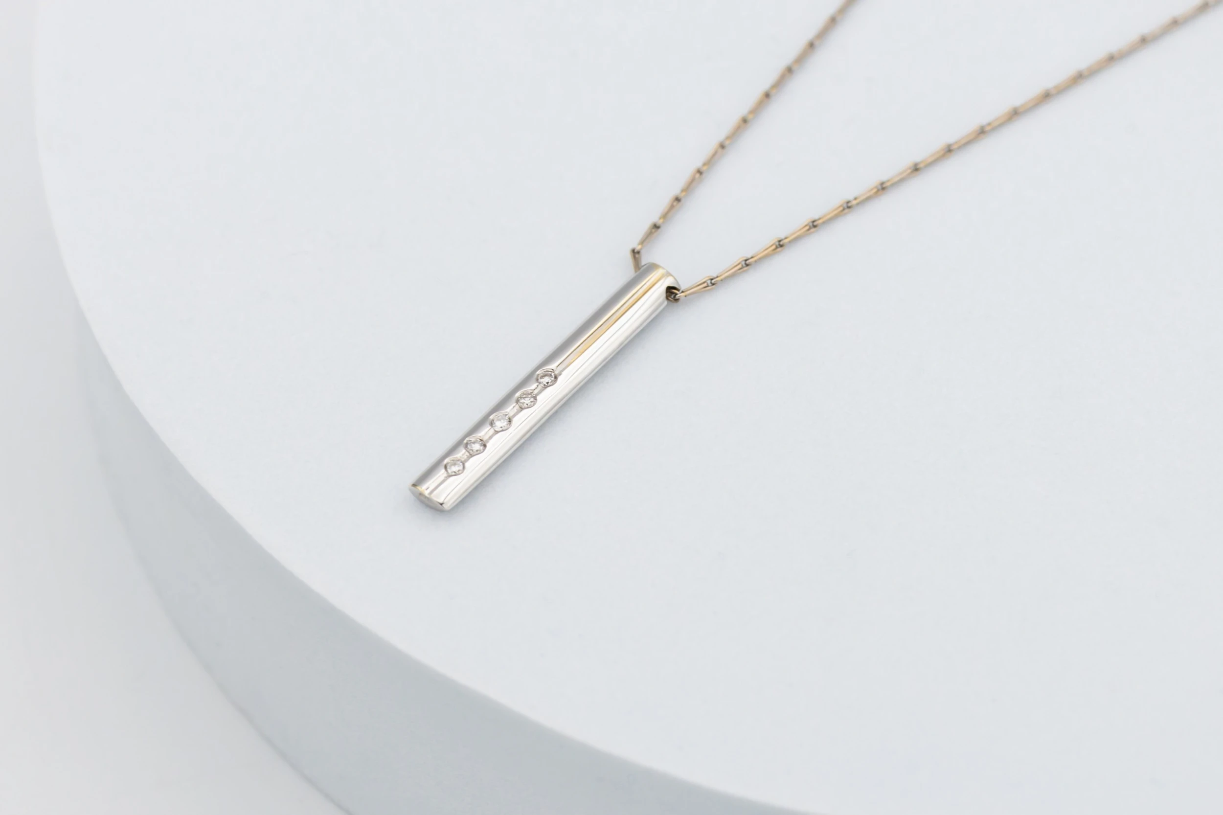 18ct White Gold Necklace Diamond Bar Pendant on Paperclip Chain