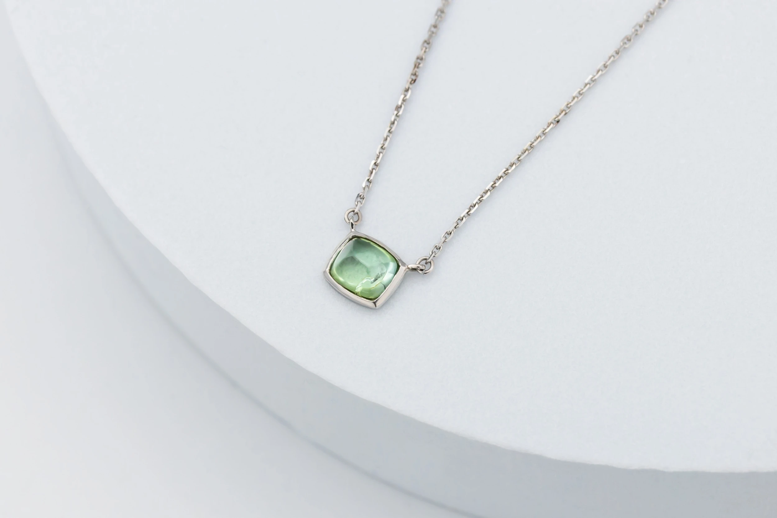18ct White Gold Green Tourmaline Pendant Cable Link Necklace