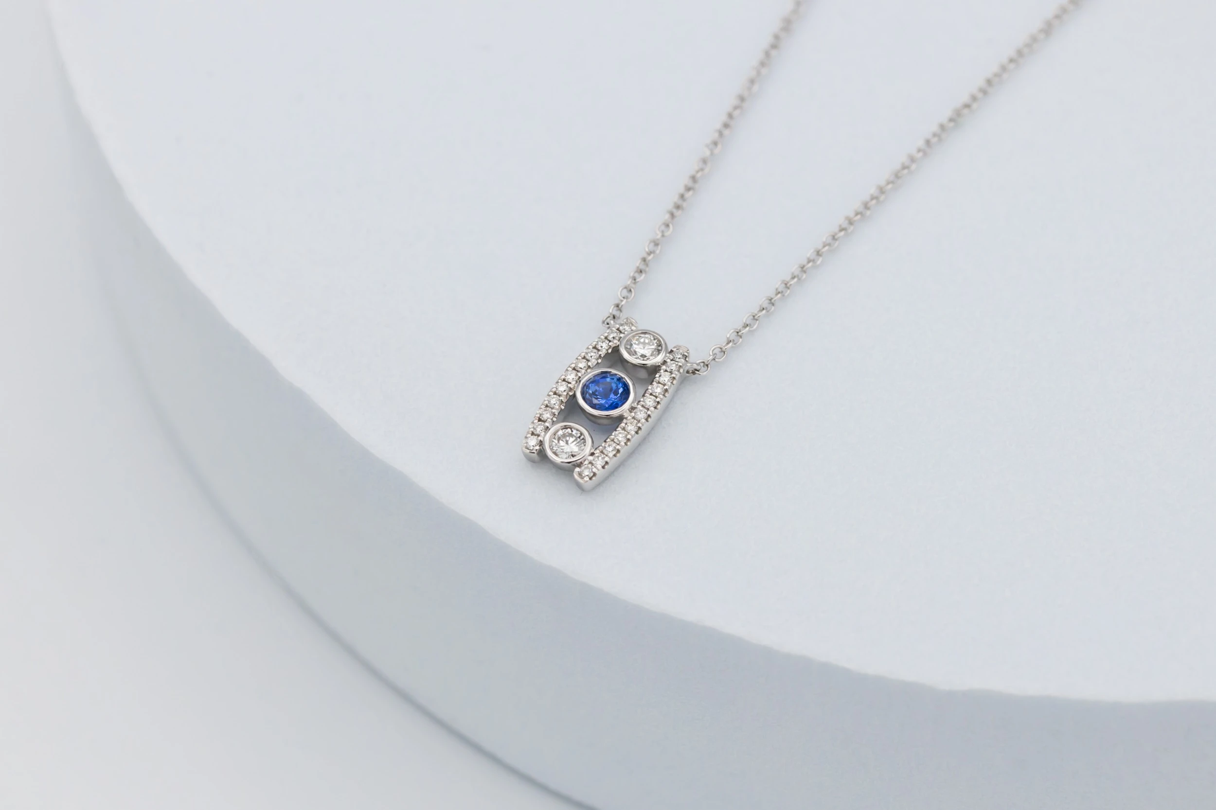 18ct White Gold 0.29ct Sapphire and Diamond Pendant Necklace
