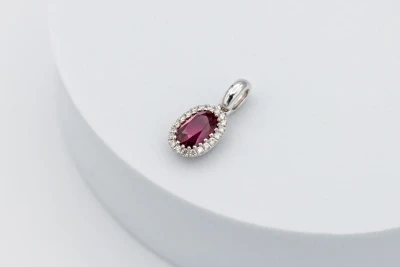 18ct White Gold 1.16ct Ruby and 0.09ct Diamond Pendant